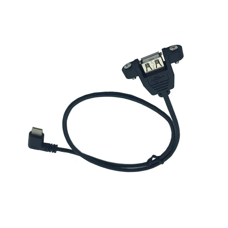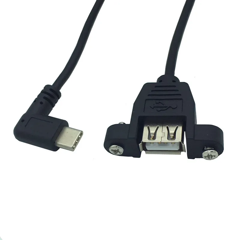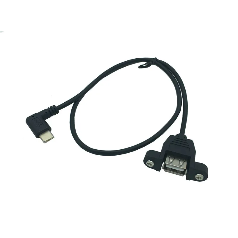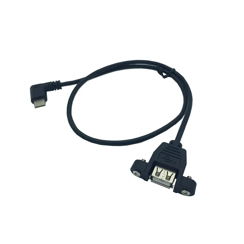 0,5 M 50cm USB 2,0 A montaje en panel hembra a cable de extensión macho en ángulo recto Tipo C