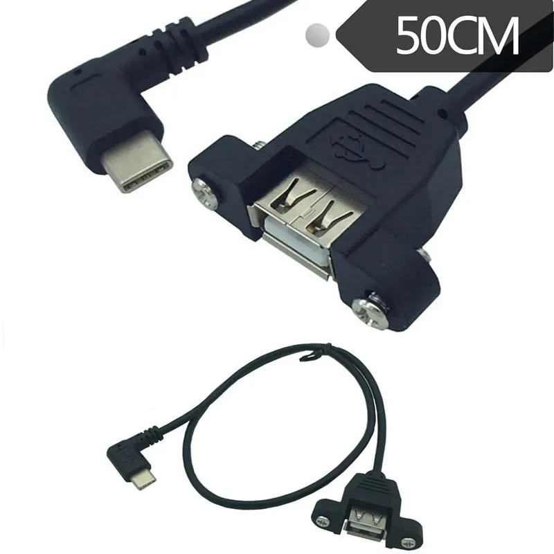 Comprar Montaje de panel hembra USB 0,5 A, cable de extensión macho en ángulo recto tipo c, 2,0 m, 50cm