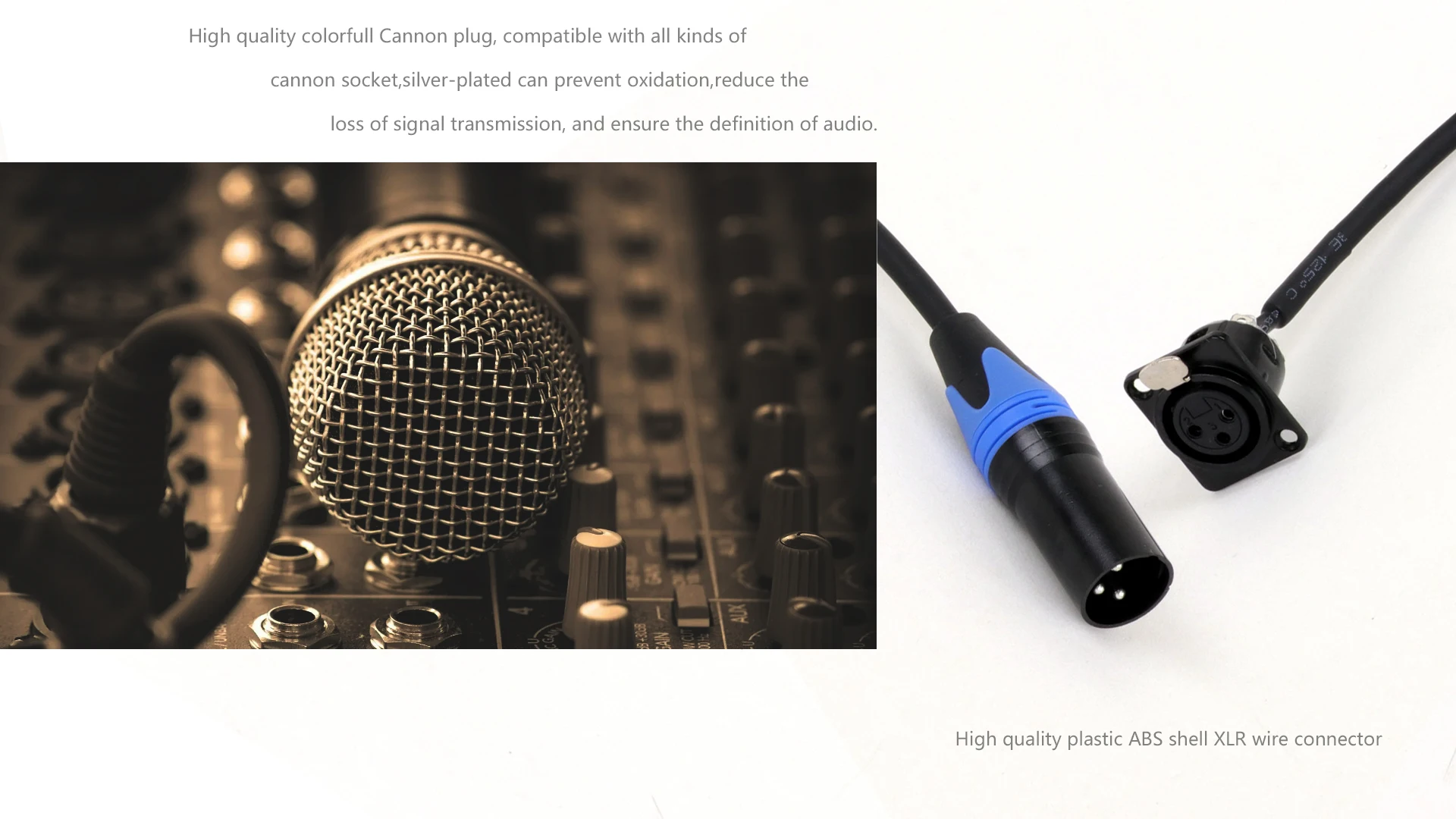* Adecuado para instalación y conexión de equipos de audio relacionados con XLR, audio activo, mezclador, reverberador, conmutador de matriz de audio, distribuidor de audio y otros equipos de audio.