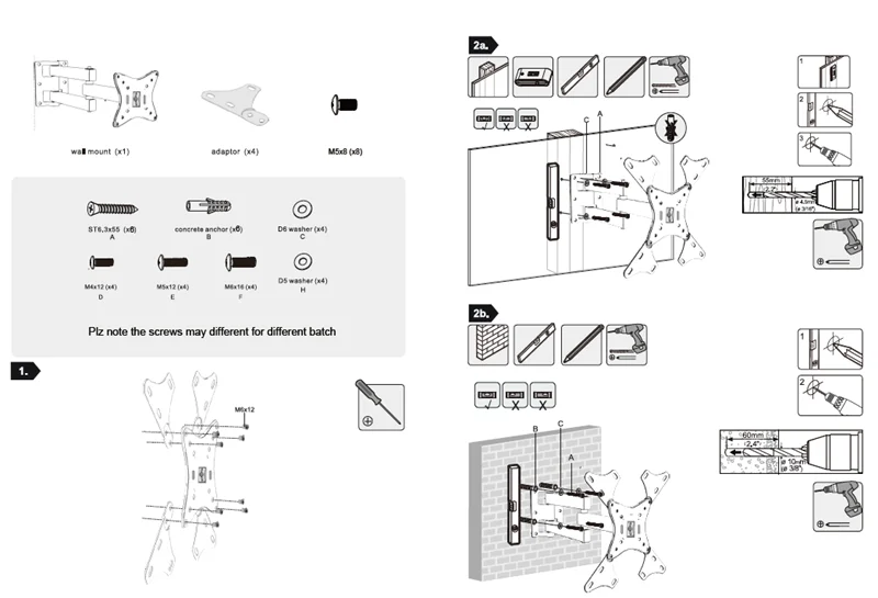 Perfil de TV a pared: min 60mm,max 360mm