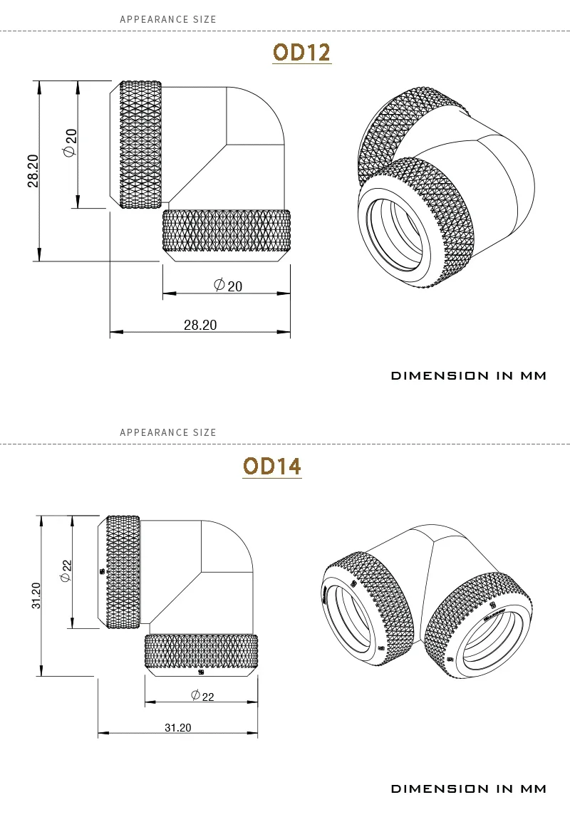 Comprar Montaje de tubo duro Barrow de 90 grados, adaptadores de rosca G1/4 para tubos duros OD14mm