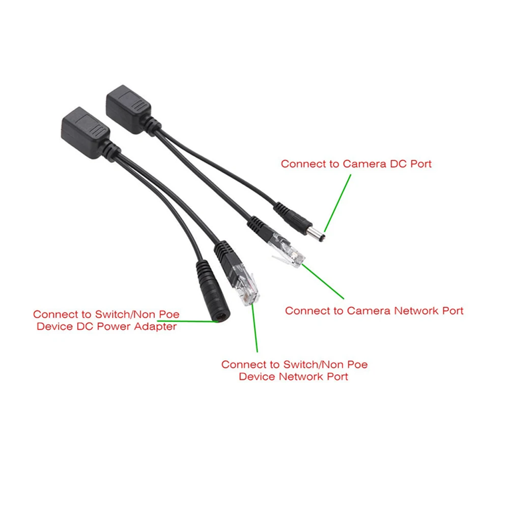 Comprar Montions Cable adaptador POE con conector DC Inyector RJ45 + Divisor POE Alimentación pasiva CC a través de Ethernet para sistema de cámara IP