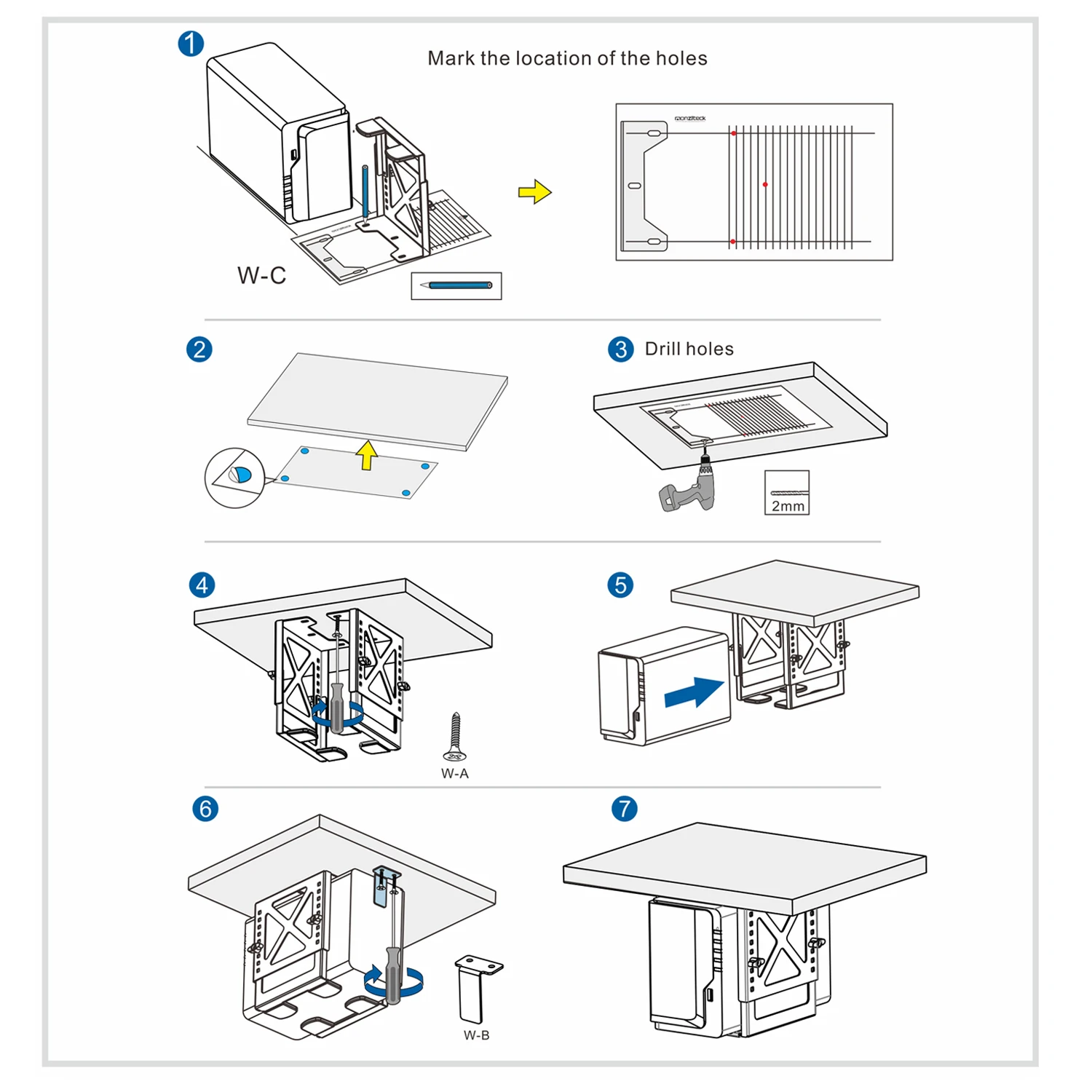 Soporte versátil: este soporte debajo del escritorio sostiene de forma segura una PC NAS (almacenamiento conectado a la red) o una computadora de factor de forma pequeño debajo de su escritorio o estación de trabajo.
