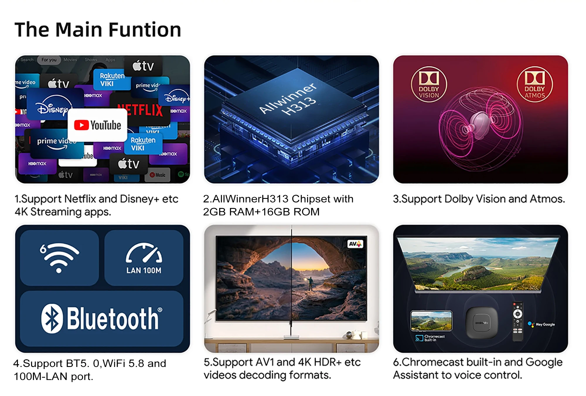Calidad de imagen de alta definición, delicada y realista: admite decodificación de video de alta definición 4K @ 60fps, equipado con tecnología HDR, presenta efectos de calidad de imagen delicados y realistas, lo que le permite disfrutar de una experiencia de visualización a nivel de cine en casa.