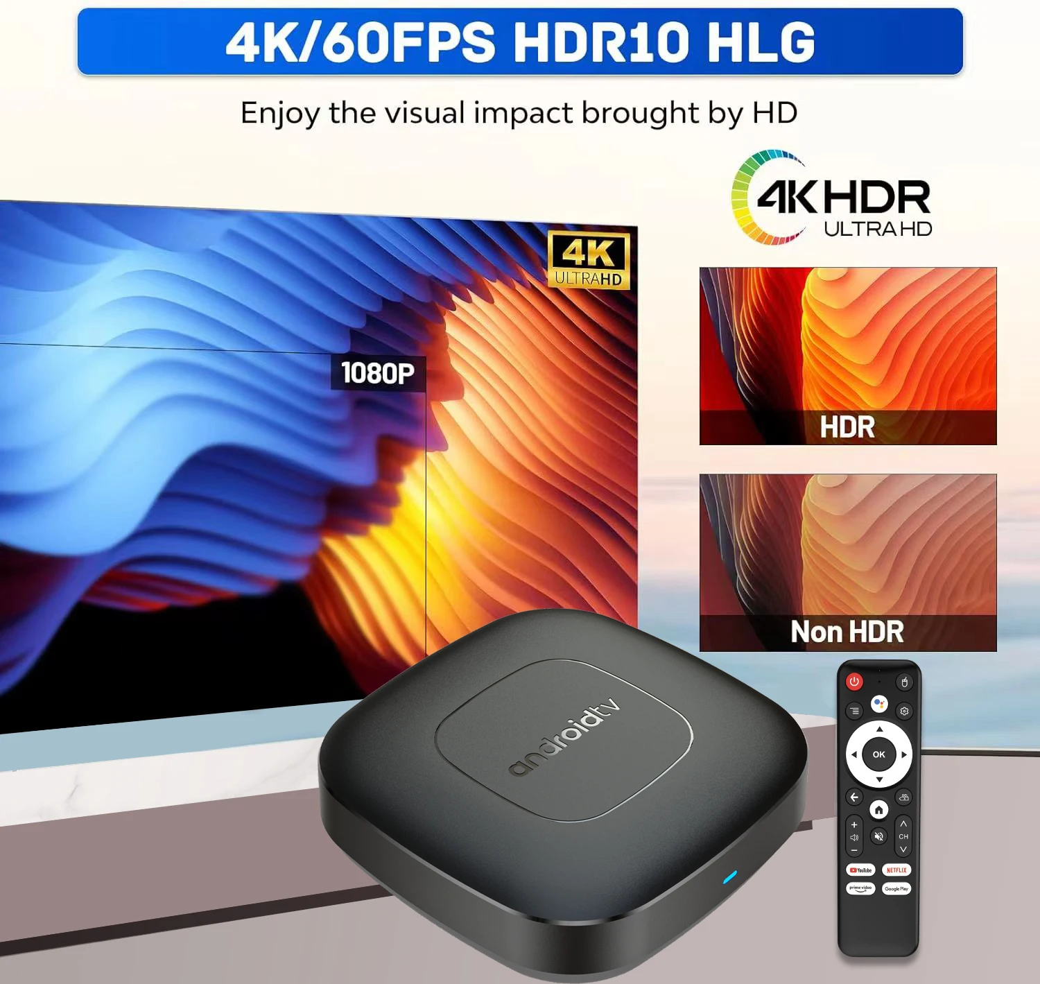 Calidad de imagen de alta definición, delicada y realista: admite decodificación de video de alta definición 4K a 60 fps, equipada con tecnología HDR, presenta efectos de calidad de imagen delicados y realistas, lo que le permite disfrutar de una experiencia de visualización a nivel de cine en casa.