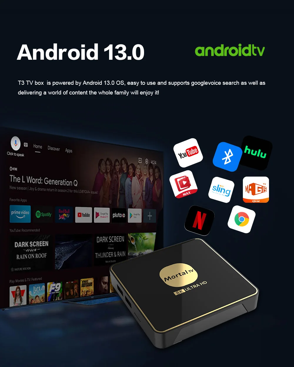 Rich Functions, Multi-faceted Applications: Runs on the Android TV 13.0 operating system, compatible with a large number of applications and games, meeting your various entertainment needs. Supports 6G WiFi, stable network connection, supports Bluetooth 5, can connect peripherals.