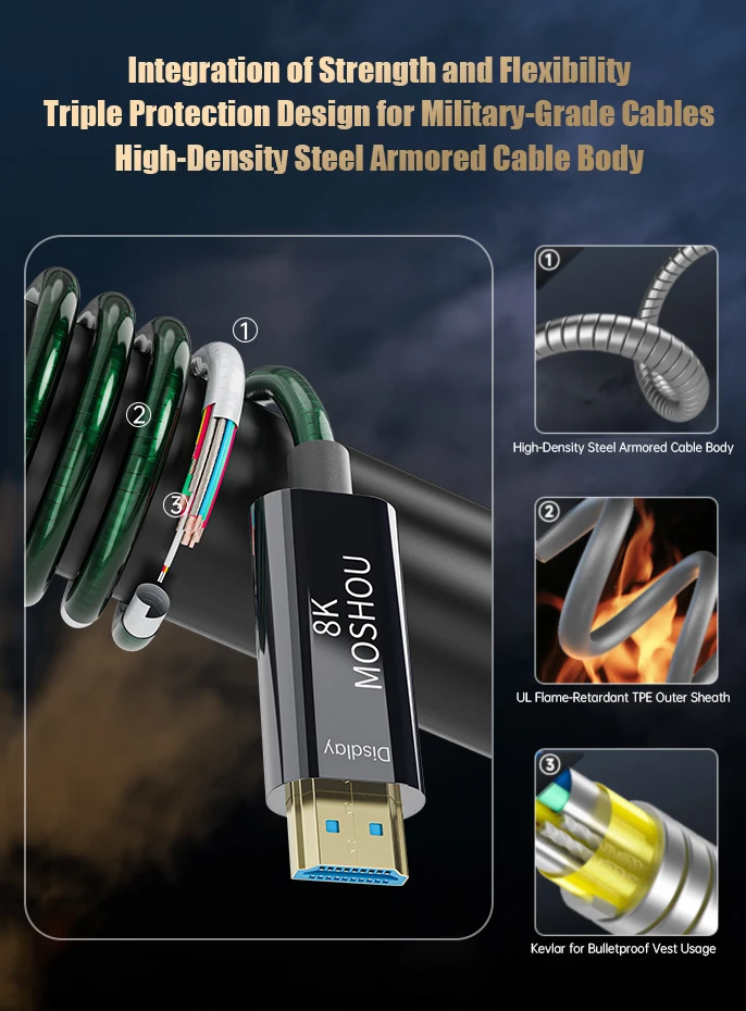 MOSHOU 8K HDMI 2,1 Cable de fibra óptica 48Gbps 8K @ 60Hz 4K @ 120Hz Cable HDMI RTX 4080 RTX 4090 HDR eARC Cable de cubierta de TPU suave para Xbox PS5 Samsung QLED TV Amplificador