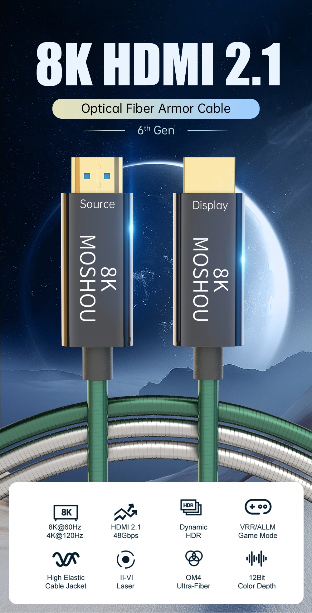 Comprar MOSHOU 8K HDMI 2,1 Cable de fibra óptica 48Gbps 8K @ 60Hz 4K @ 120Hz Cable HDMI RTX 4080 RTX 4090 HDR eARC para Xbox PS5 Samsung QLED TV