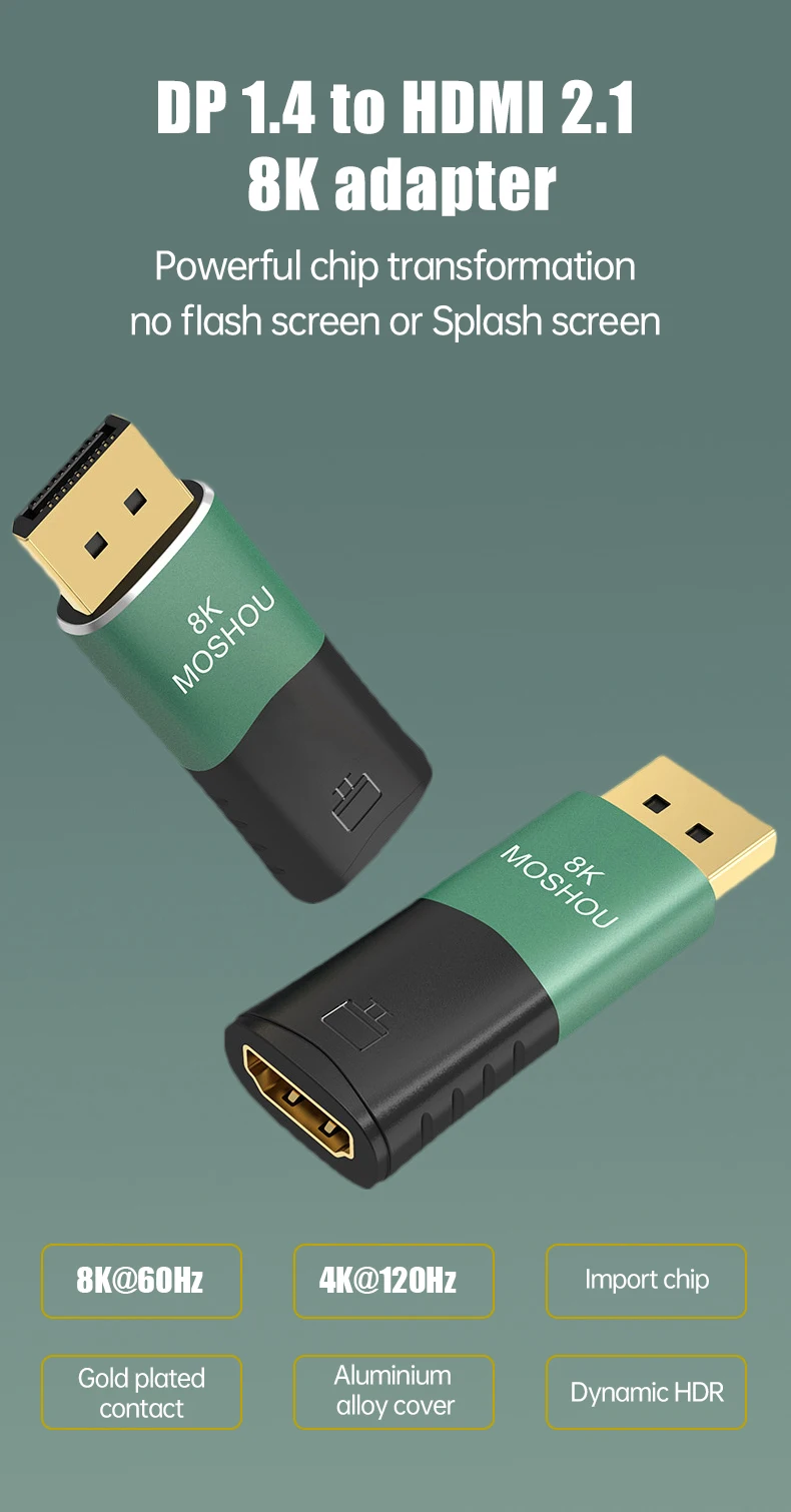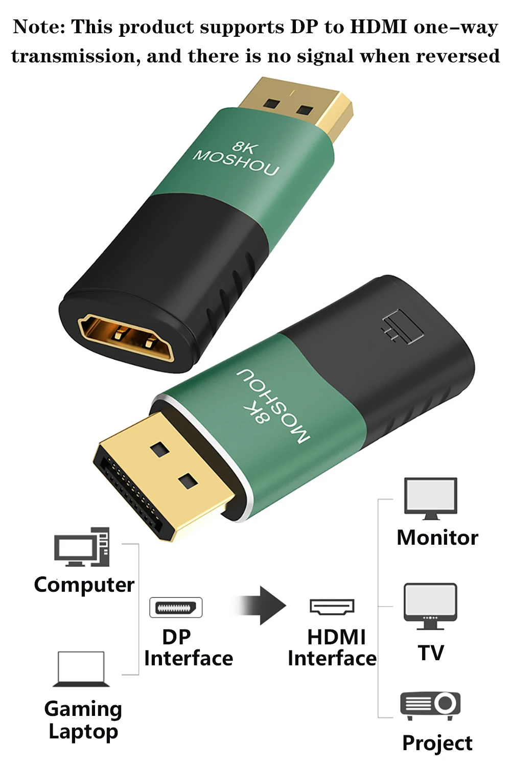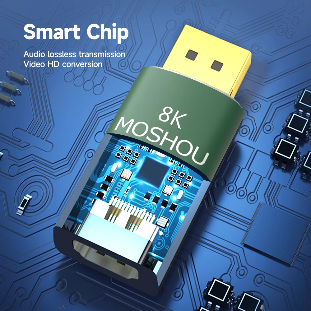 Comprar MOSHOU-Adaptador de Cable de 8K a 60Hz DP 1,4 a HDMI 2,1, convertidor hembra a macho para HDTV, PS4, PS5, portátil, 4k @ 120Hz, DP a HDMI