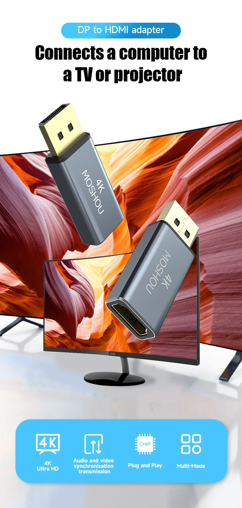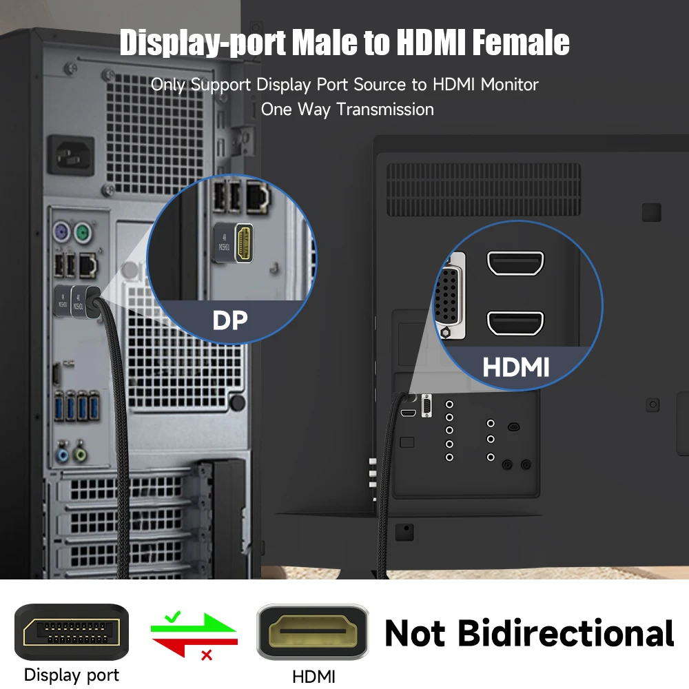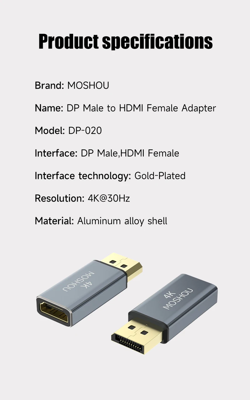 Comprar MOSHOU-adaptador Displayport a HDMI, convertidor unidireccional de DP PC a HDMI Monitor 4K @ 30 DP a HDTV macho a hembra