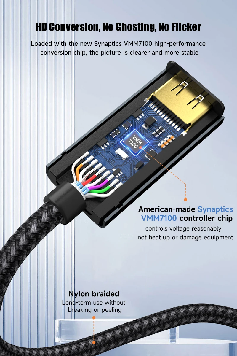 Este cable Thunderbolt 3 A HDMI 2,1 es un dispositivo Plug-and-play que no requiere instalación de controladores ni software. Admite mapeo dinámico HDR, DSC 1,2 y HDCP 2,3, lo que en última instancia le brinda un impacto visual 3D claro y vívido. Tenga en cuenta que este es un cable unidireccional que solo admite la conexión de HDMI a HDMI y no es compatible con la conexión de HDMI a HDMI.