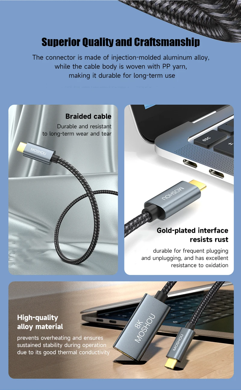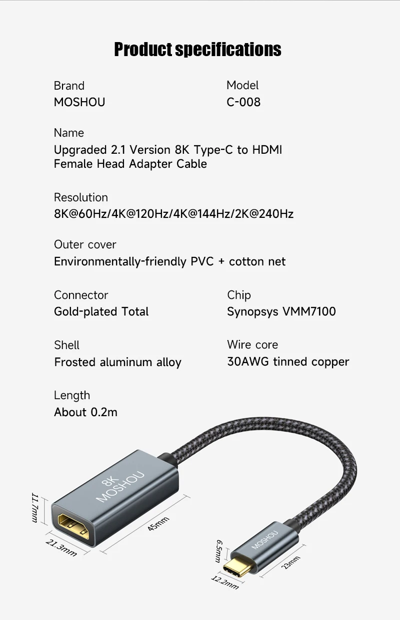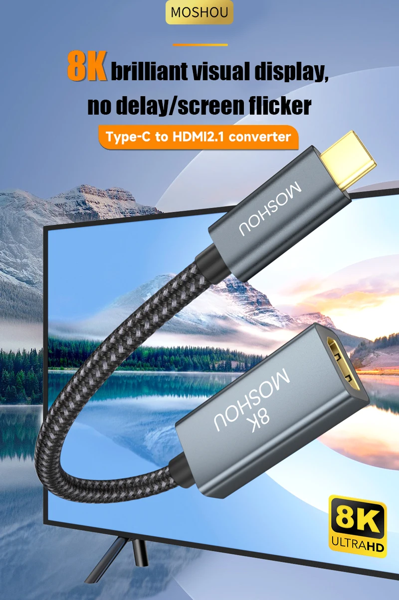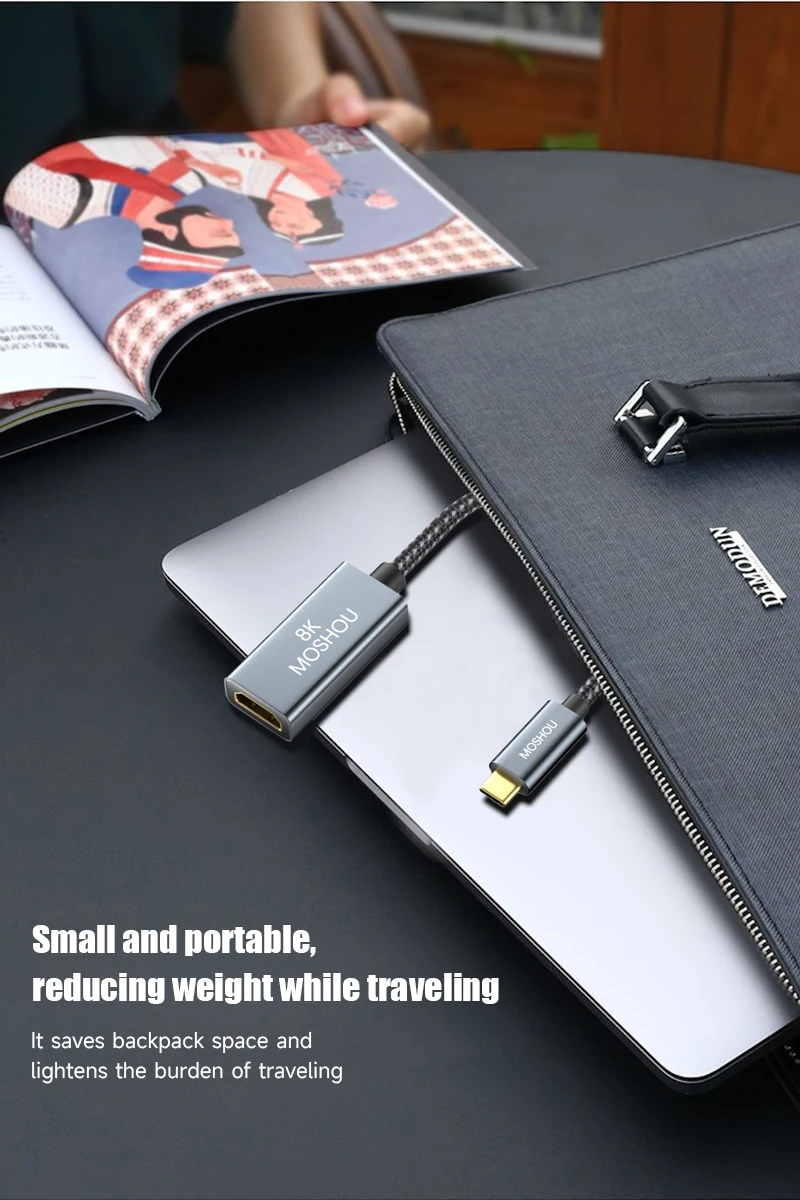 Comprar MOSHOU-adaptador Thunderbolt 3 USB tipo C a HDMI 2,1, convertidor de vídeo macho a hembra, 8K @ 60Hz, 4K @ 120Hz, extensor de 48Gbps