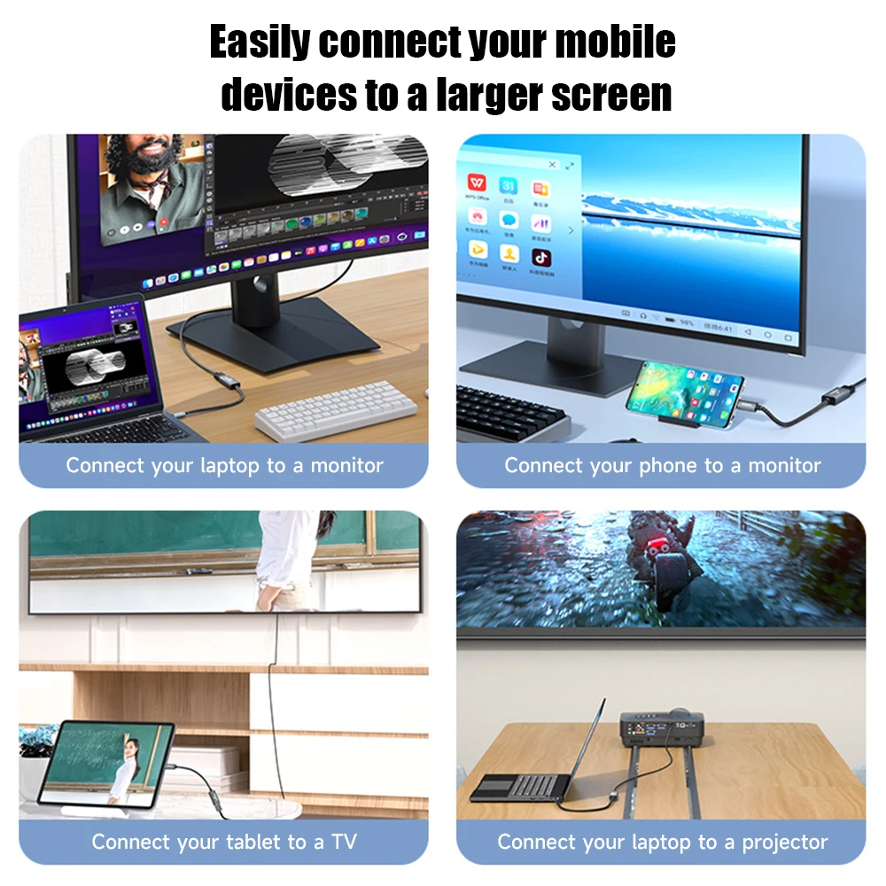 Este cable USB tipo C a HDMI se puede utilizar para conectar fácilmente un teléfono inteligente Android que admita el "modo DP Alt" a un televisor o proyector equipado con un puerto HDMI. Al conectar el teléfono directamente al televisor, no hay necesidad de preocuparse por los problemas de transmisión relacionados con el WiFi inestable, lo que permite una experiencia de visualización fluida de Sus episodios de TV favoritos en una pantalla más grande. Sin embargo, si desea reflejar la pantalla de su teléfono, es importante desactivar manualmente el modo Dex