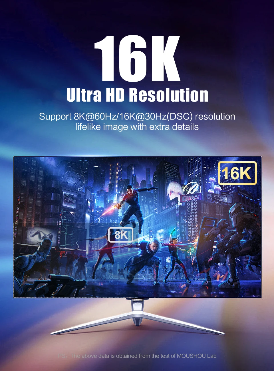 Admite imágenes realistas de 16K @ 30Hz(DSC)/8K @ 60 Hresolución con detalles adicionales