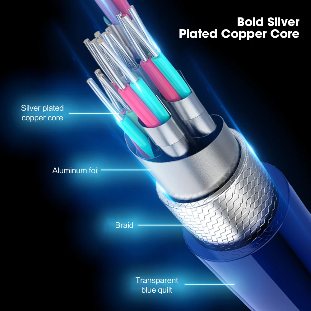 El cable MOSHOU DP 2,0 tiene un triple blindaje y hojalata, es altamente resistente con EMI. El conductor está hecho de núcleo OCC Chapado en plata de 28AWG. Tolerancia de una vida útil de curvatura superior a 30.000. Puede proporcionar una mayor conectividad para la transmisión de señal.