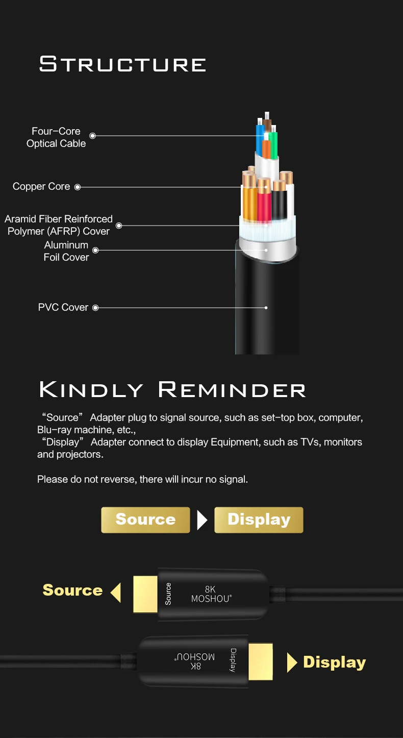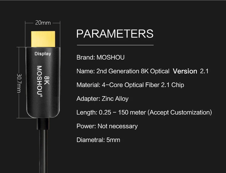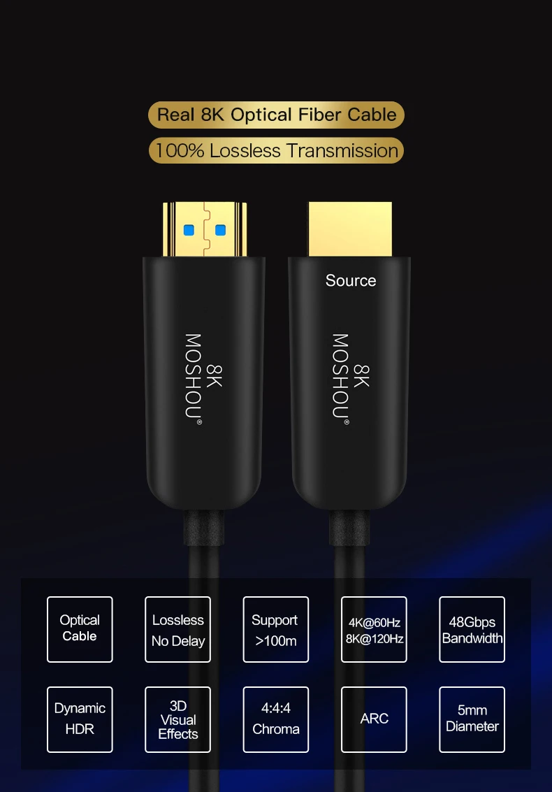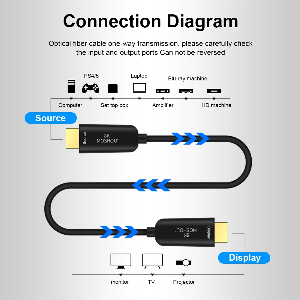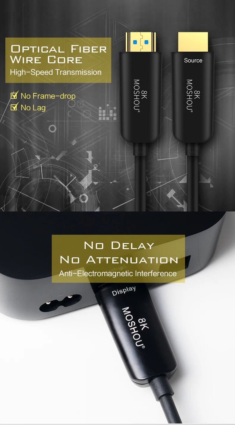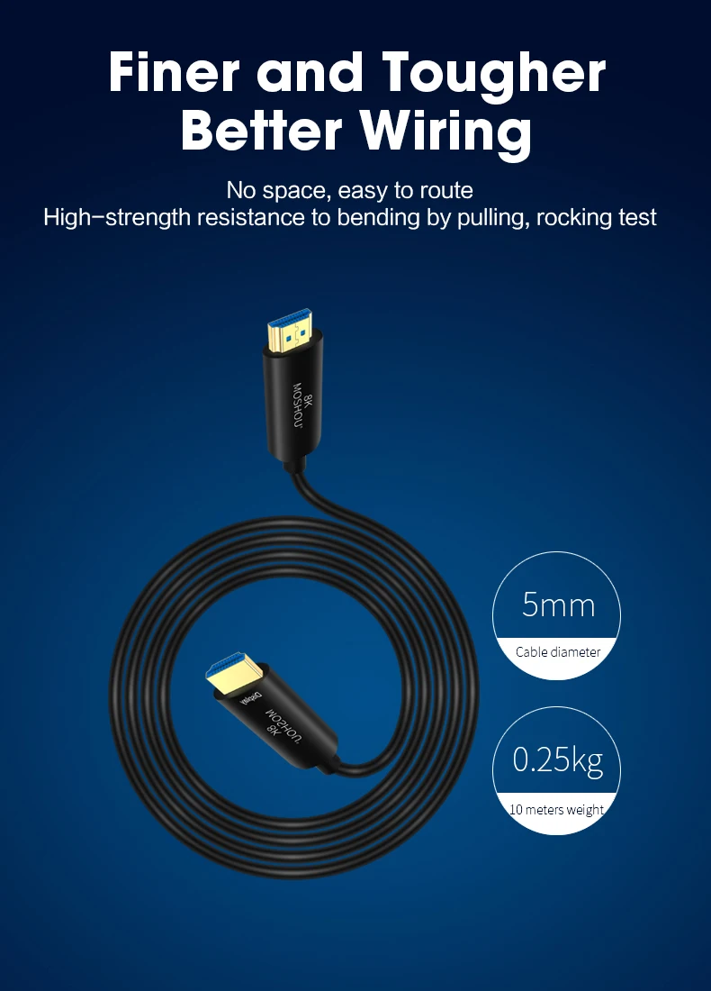 Comprar MOSHOU-Cable de fibra óptica HDMI 2,1, 8K @ 60Hz, 4K @ 120Hz, 48gbps, HDR, ARC, HDCP 2,2, amplificador para TV, PS4, PS5, Xbox, RTX3070, RTX4090