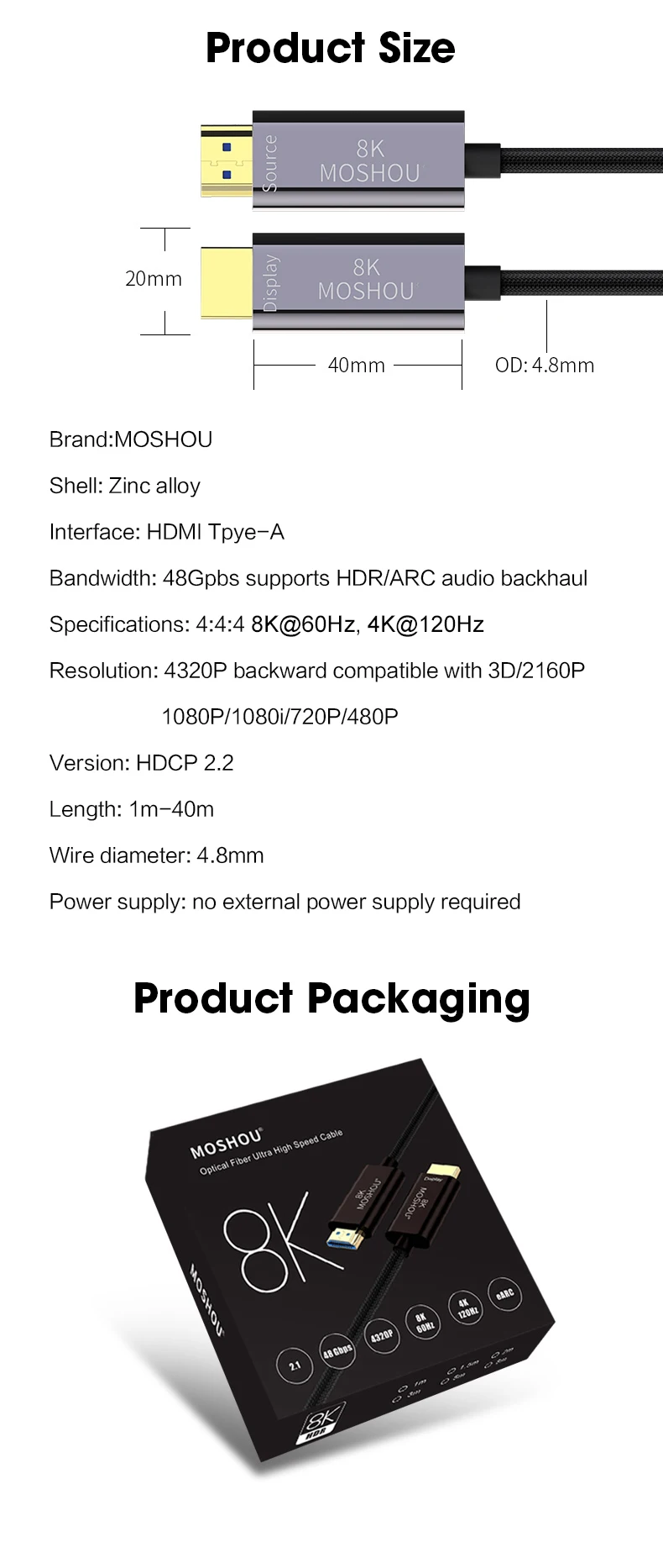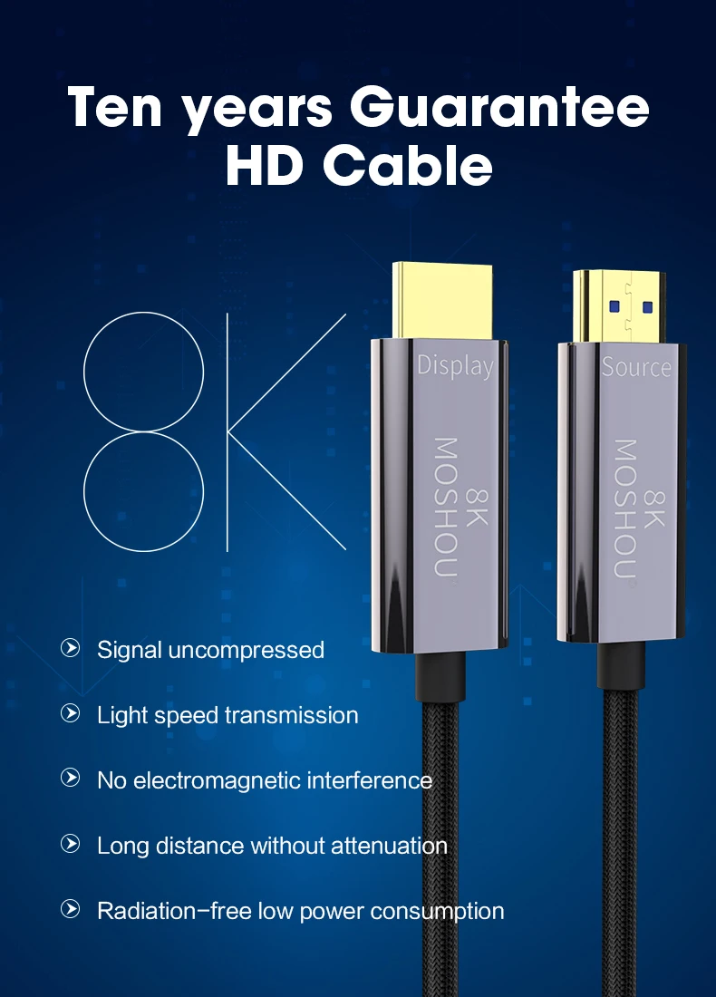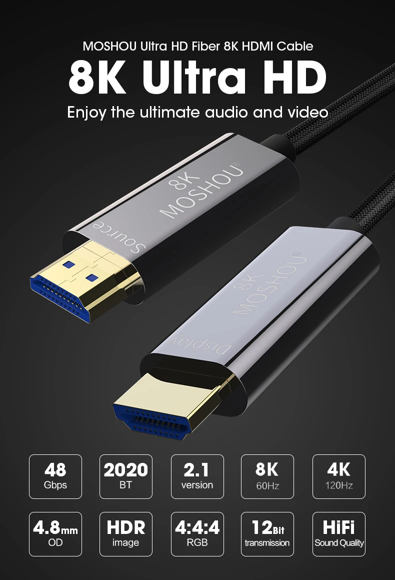 Comprar MOSHOU-Cable de fibra óptica HDMI 2,1, dispositivo de audio HDR10 + 8K @ 60Hz 4K @ 120Hz, Ultra alta velocidad óptica para PS5 RTX 3080 Xbox LG QLED TV