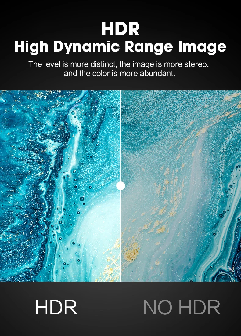Admite pantalla de vídeo 3D, HDR dinámico, HDR10 +, VESA DSC 1.2a, BT.2020 y Dolby Vision, mejora los valores de cada momento para profundidad, detalle, brillo, frecuencia de actualización variable (VRR) y transporte rápido de fotogramas, canal de retorno de audio mejorado (eARC).