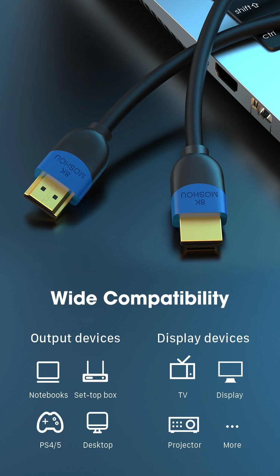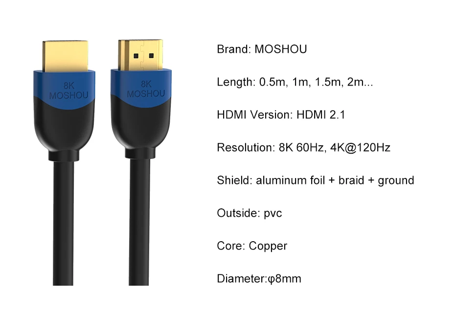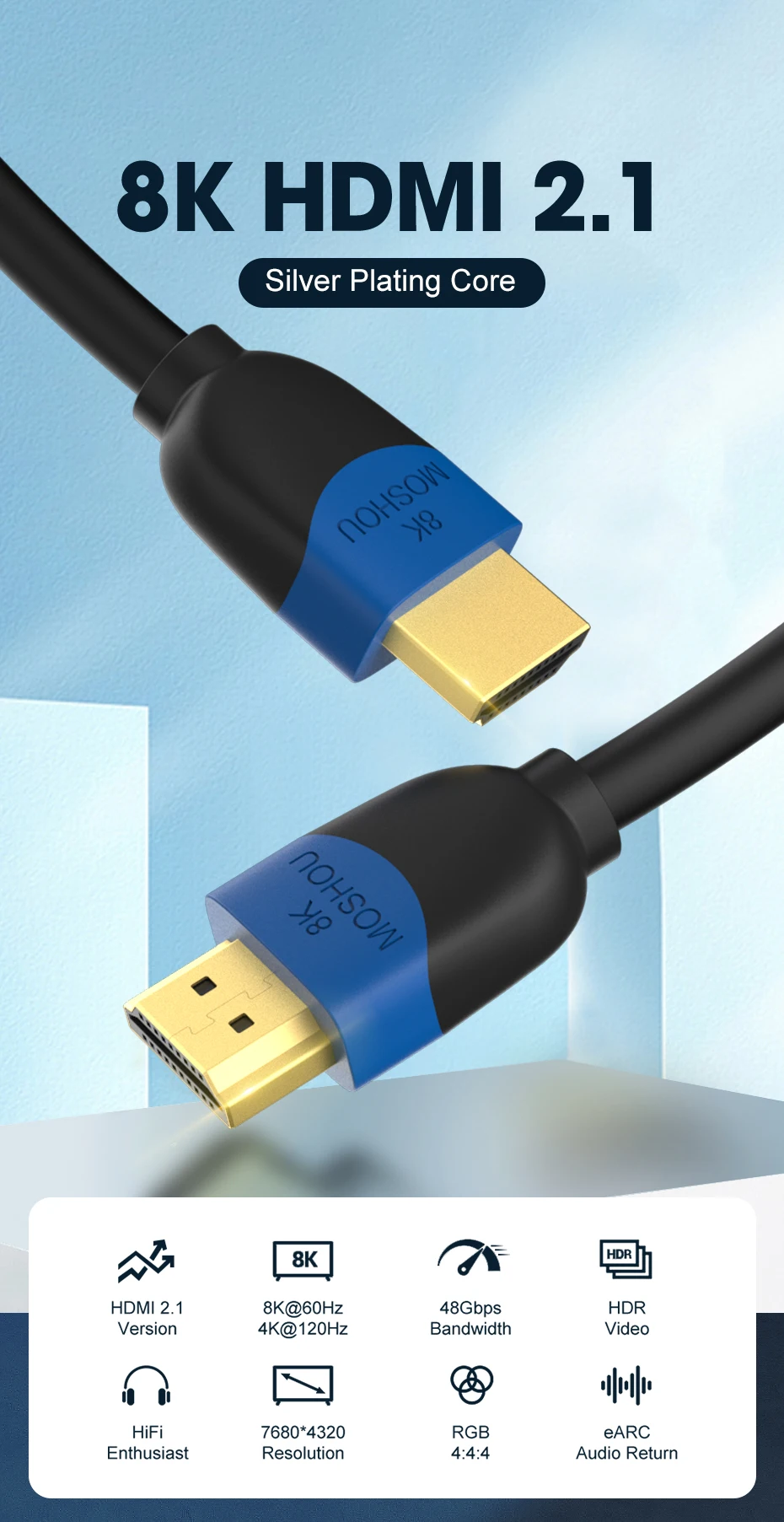 Comprar MOSHOU Cable HDMI 2.1 8K/60Hz 4K/120Hz 48Gbps ltra Cable HDMI de alta velocidad para PS5 XboxSamsung TV