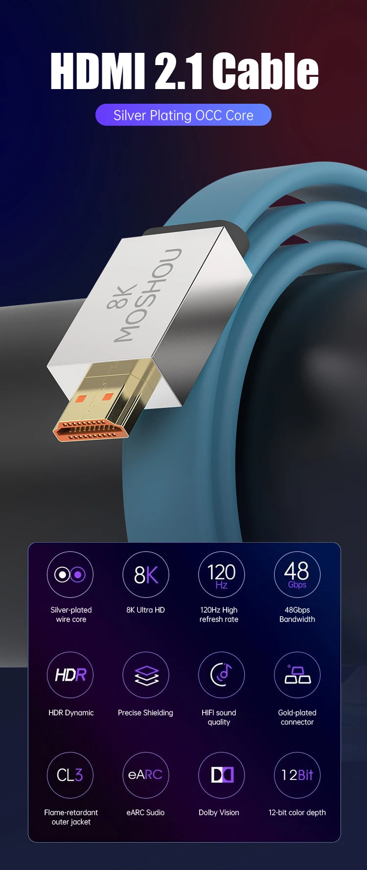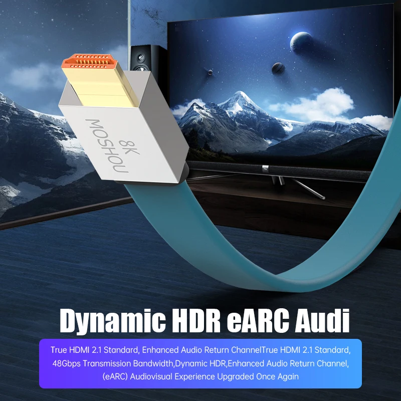 Comprar MOSHOU-Cable HDMI 2,1 para Dolby Atmos Vision, 48Gbps, 8K @ 60Hz, 4K @ 120Hz, Cable HDMI de Ultra alta velocidad, HDCP 2,2 y 2,3, HDR 10, auriculares