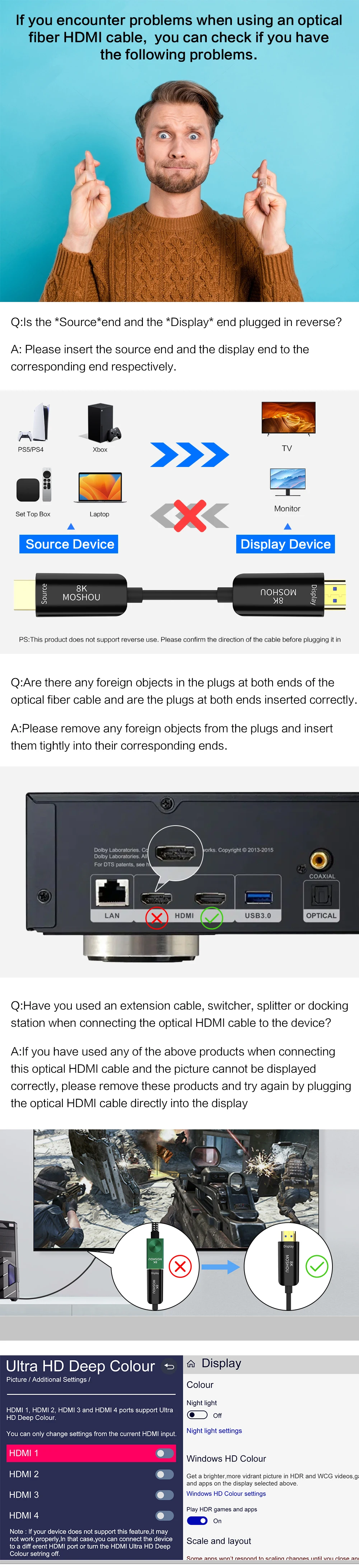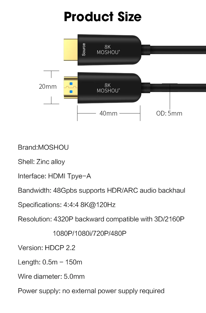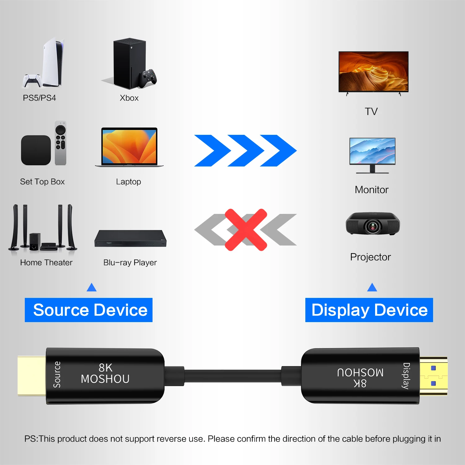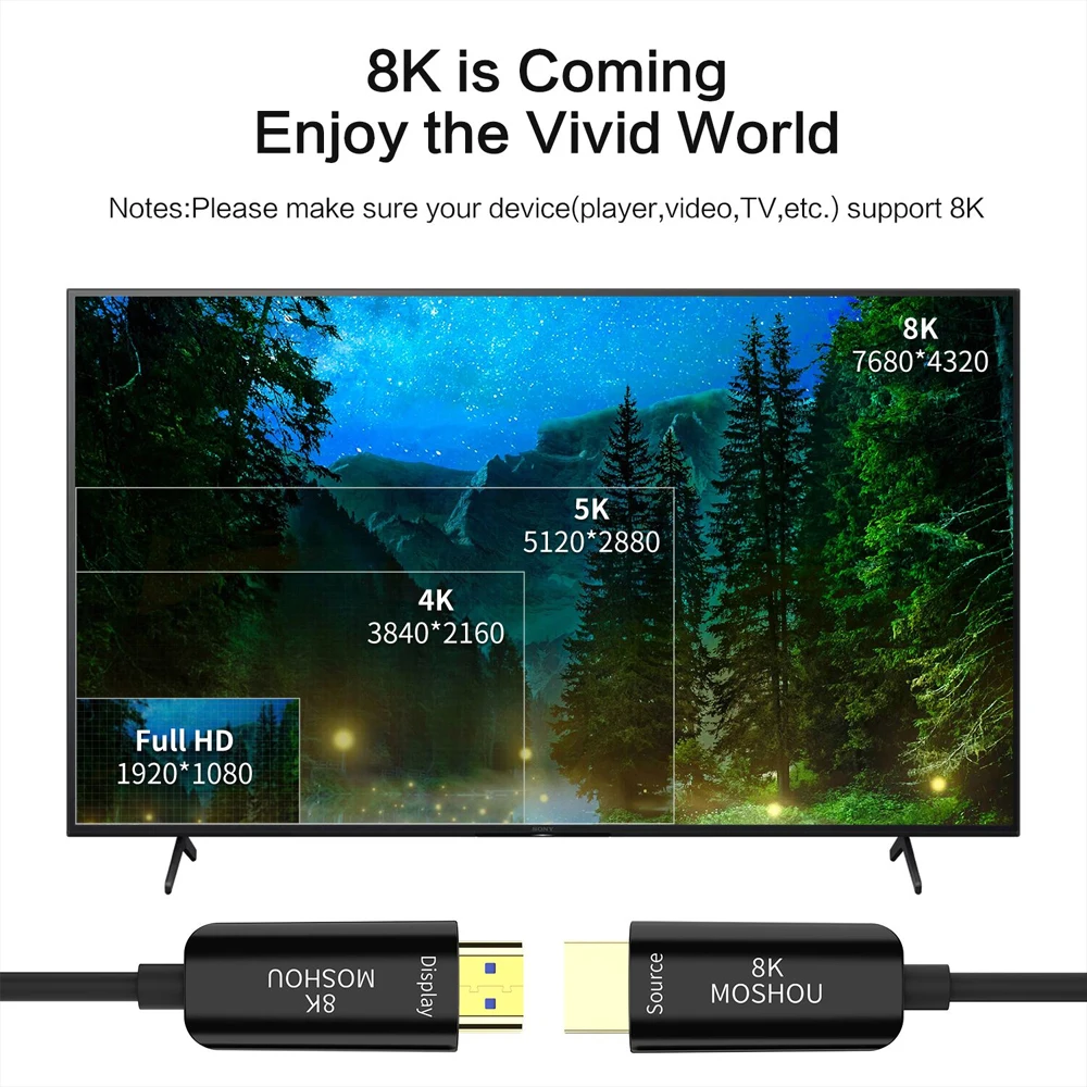 Comprar MOSHOU-Cable HDMI 2,1 de fibra óptica, 8K, 60Hz, 4K, 120Hz, 48Gbps, Ultra alta velocidad, dinámico, HDR, HDCP, 2,2 y 2,3, auricular para PS5, RTX4080