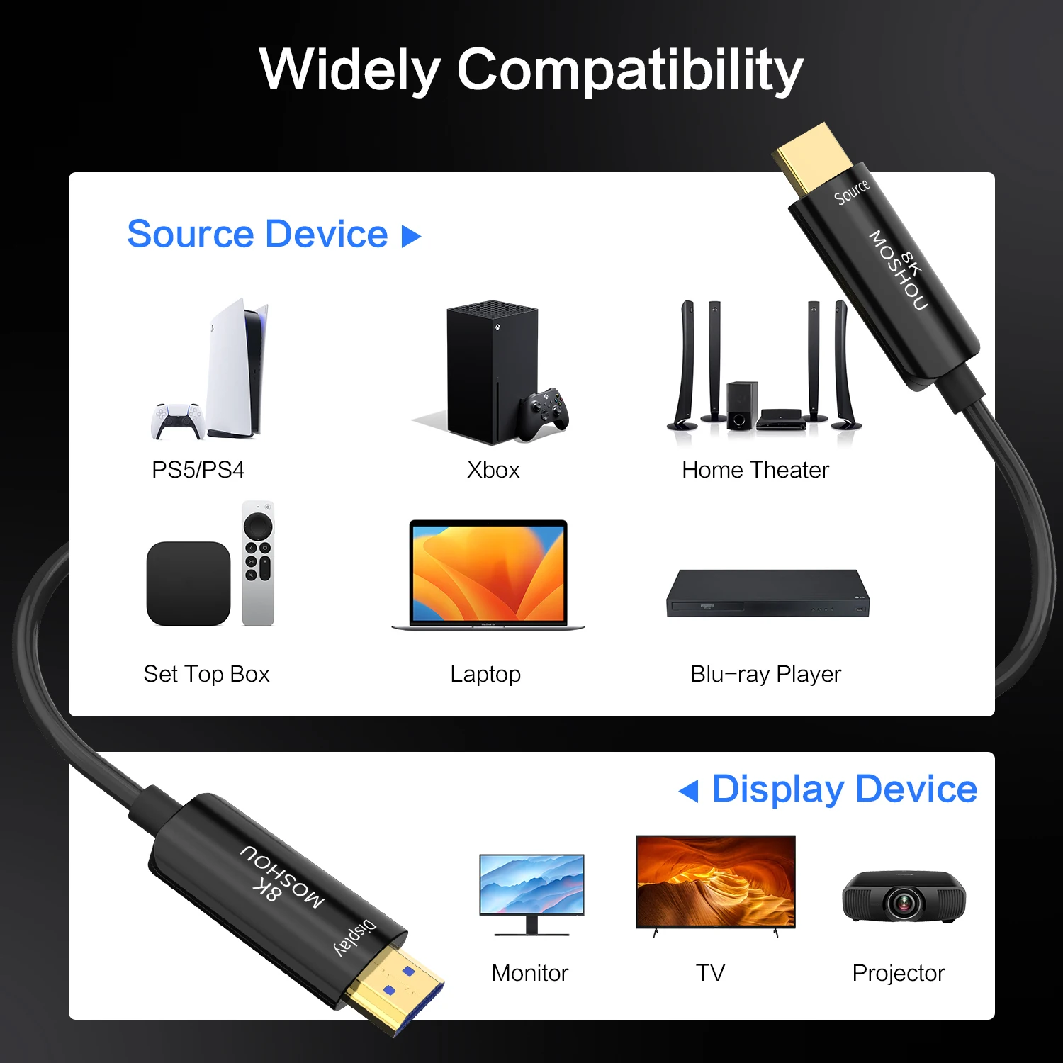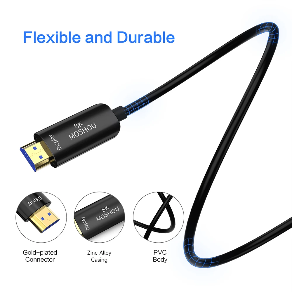 Comprar MOSHOU-Cable HDMI 2,1 de fibra óptica, 8K, 60Hz, 4K, 120Hz, 48Gbps, Ultra alta velocidad, dinámico, HDR, HDCP, 2,2 y 2,3, auricular para PS5, RTX4080