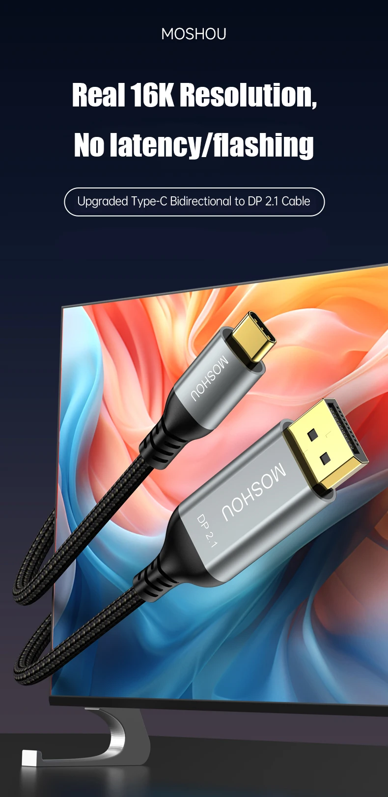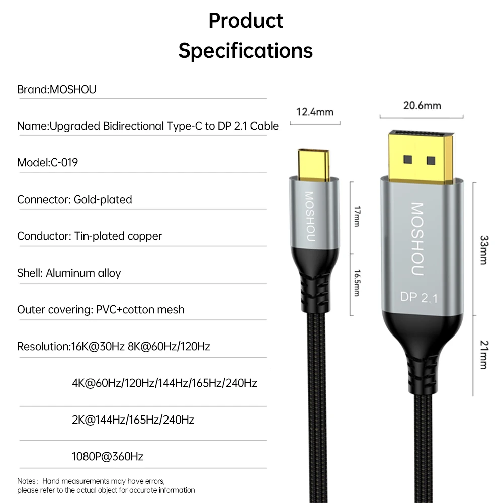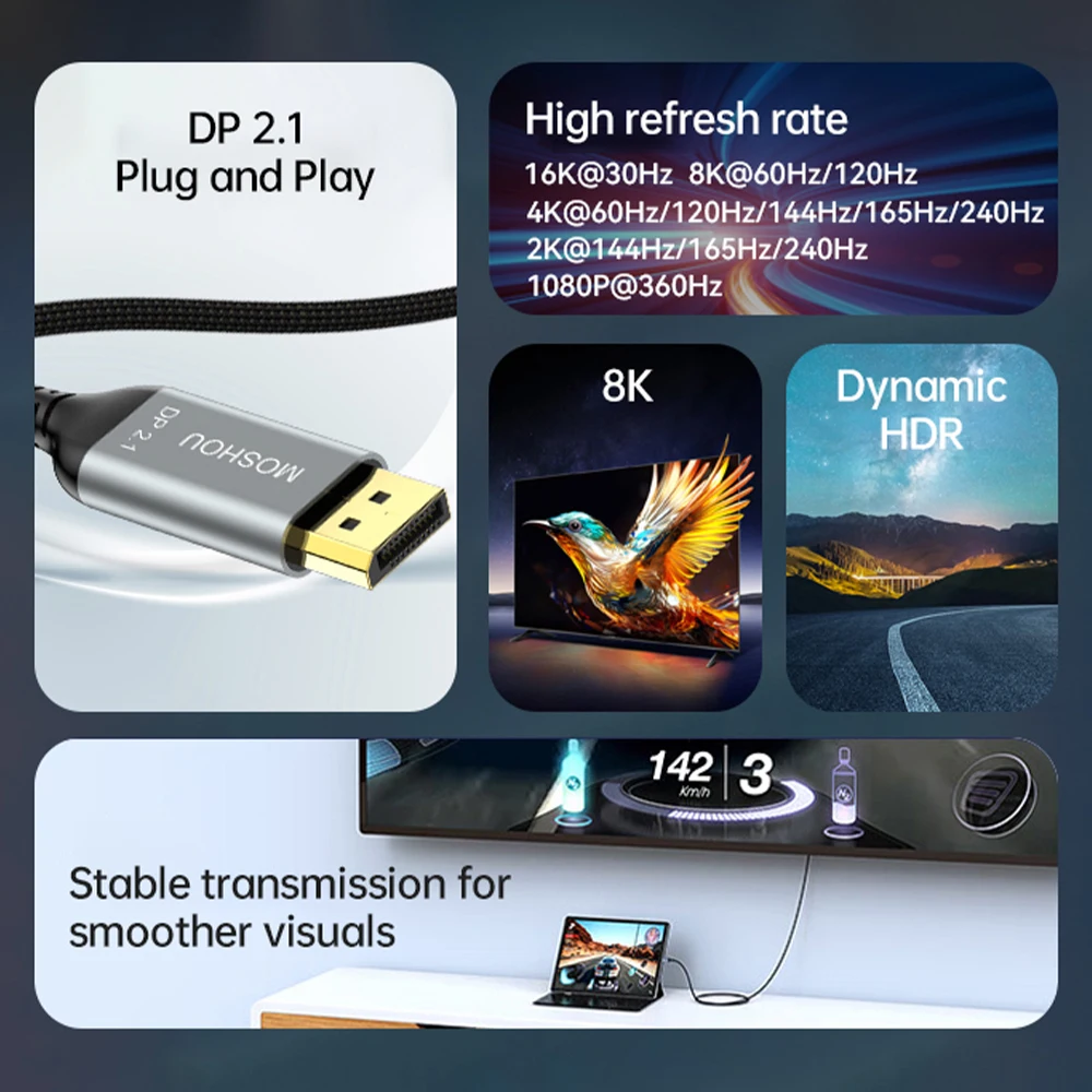 Comprar MOSHOU-Cable USB C a DisplayPort 2,1, 16K @ 30Hz, 8K @ 60Hz, 40Gbps, Thunderbolt 4/3, tipo C a DP 2,1, para MacBook Pro/Air
