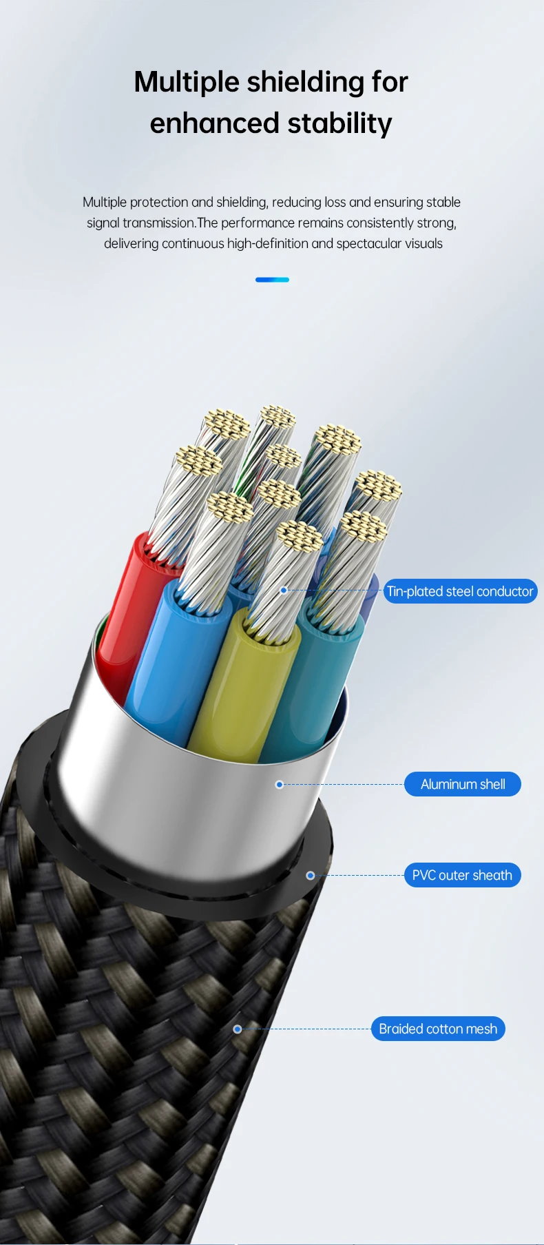 El cable USB C a DisplayPort 2,1 cuenta con un ancho de banda sin precedentes de 80Gbps, casi 3 veces lo que estaba disponible en la especificación DP 1,4 anterior, transmisión estable y de alta velocidad sin pérdida de señal. Nota: Es compatible con versiones anteriores de los estándares DP 1,4 y DP 1,2. Evite el parpadeo de la pantalla y el recorte de audio y transmita eventos deportivos, películas, fotos y álbumes sin problemas.