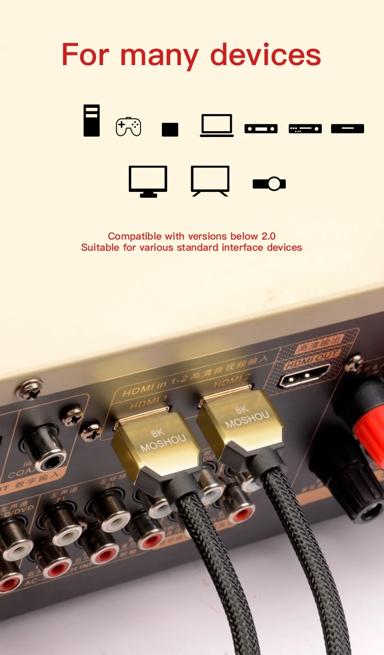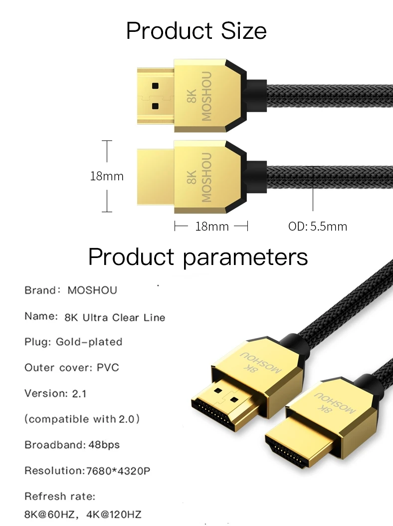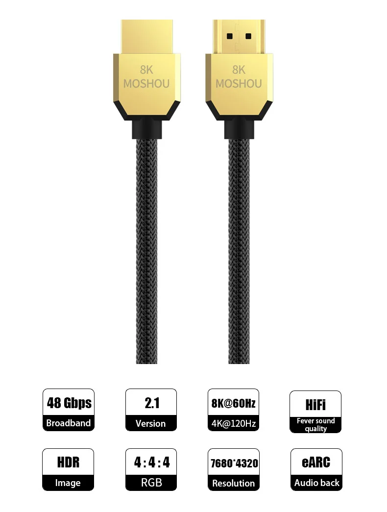 Comprar MOSHOU-cable de vídeo 8K, 60Hz, 4K, 120Hz, HDMI 2,1, 48gbps, ARC HDR, HiFi, para proyector PS5 NS, interfaz Multimedia de alta definición