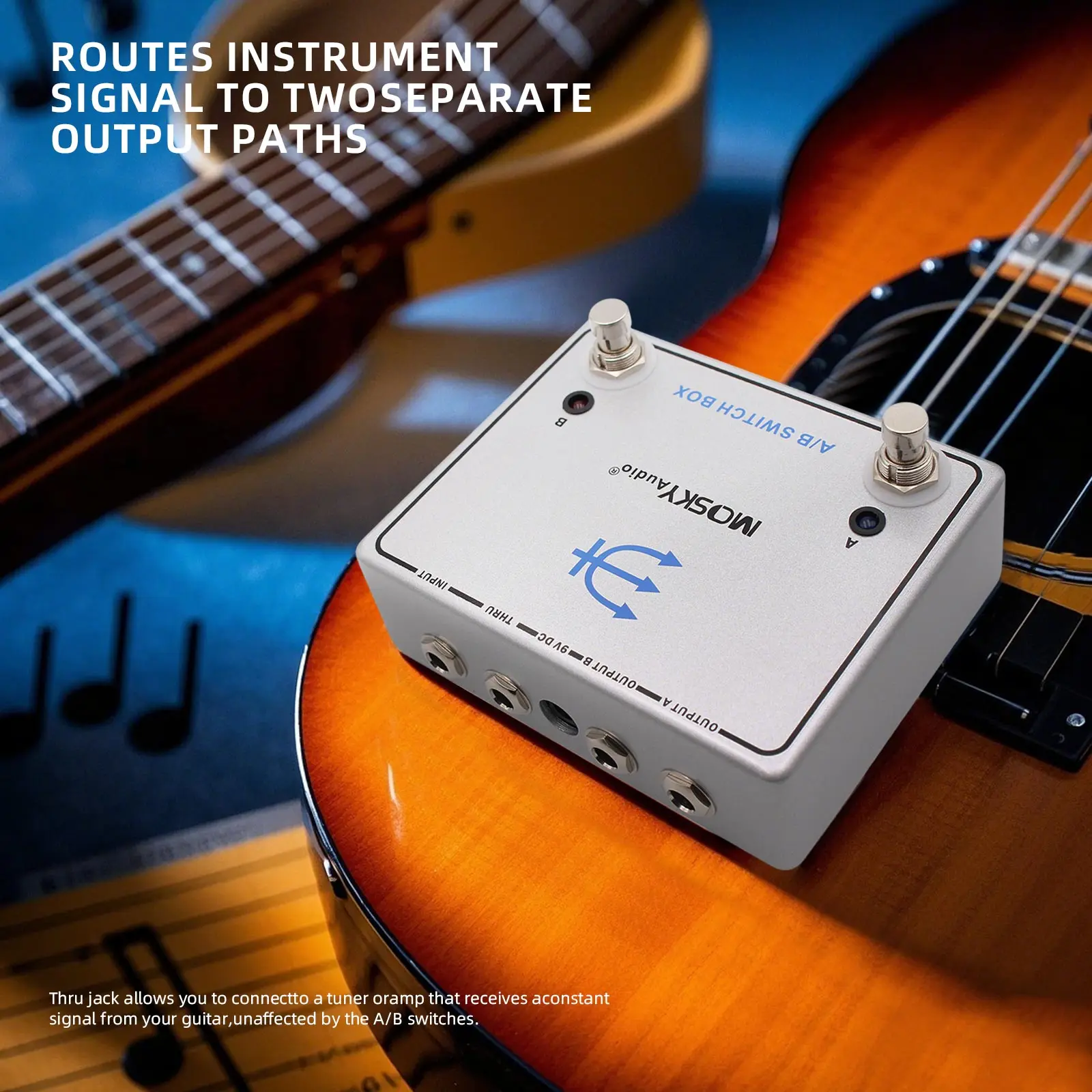 Diseño True Bypass: disfrute de una calidad de sonido nítida, ya que todos los cambios en la Mosky A/B SWITCH BOX son un verdadero cable, lo que significa que los conectores de salida están terminados a tierra cuando se entregan, preservando la integridad de la configuración del pedal del efecto de la guitarra.