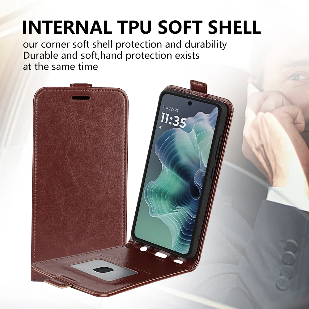 Comprar Para Moto G35 5G funda de cuero con tapa de alta calidad funda Vertical para Moto G35 5G