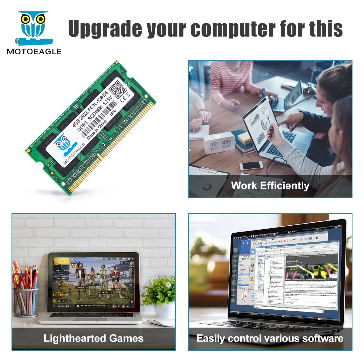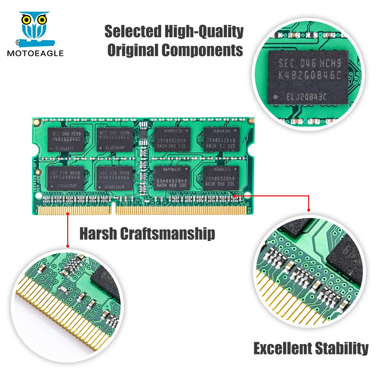 Comprar MOTOEAGLE-Memoria RAM para portátil, DDR3, 1,5 V, 1,35 V, 1066, 1333, 1600MHz, PC3, 8500, 10600, PC3L, 12800s, SODIMM