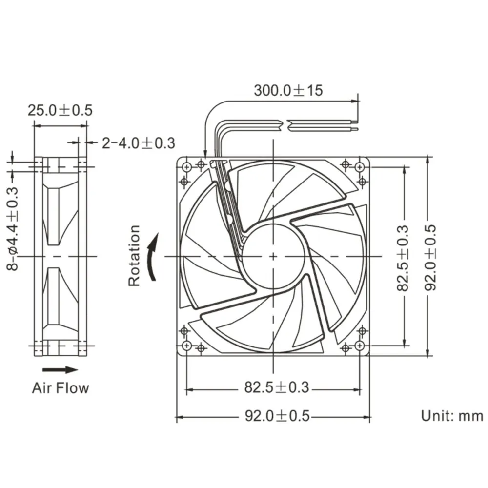 Ventilador nuevo con excelente calidad y precio atractivo. Se instala y expulsa fácilmente el aire caliente desde el interior de la carcasa. Aumente el flujo de aire en su sistema. Enfríe toda la carcasa. Amplíe la vida útil de su sistema Los ventiladores de EC vienen con rodamiento de bolas, los ventiladores de EC de larga duración se pueden conectar directamente a una fuente de alimentación de CA. (AC 110v 115v 120v 220v 240v) La electrónica convierte CA en CC y controla la velocidad del ventilador regulando la potencia del motor. Los motores EC son alrededor del 30% más eficientes que los motores de CA, porque el campo magnético secundario proviene de imanes permanentes en lugar de devanados de cobre. Parámetros: Dimensiones: 92 mm (largo) × 92 mm (ancho) × 25 mm (alto) Conector: 2 cables (sin conector) Voltaje nominal: CA 110 V-240 V Tipo de rodamiento: Rodamiento de bolas Velocidad nominal: 2800 RPM ± 10 % Nivel de ruido: 33 dBA ± 10 % Flujo de aire: 55. 2CFM±10% Longitud del cable: 30 cm Vida útil: 50000 horas Peso: 85 g/unidad Potencia: 6. 0W