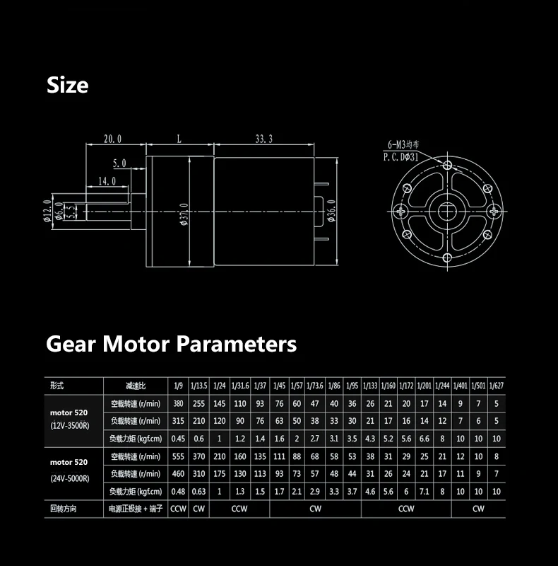 Comprar Motor de engranaje de 24V ZGA37RG 12V CC 5RPM 10RPM 15RPM 20RPM 30RPM 50RPM 100RPM a 1000RPM 37MM Motor de CC con caja de cambios