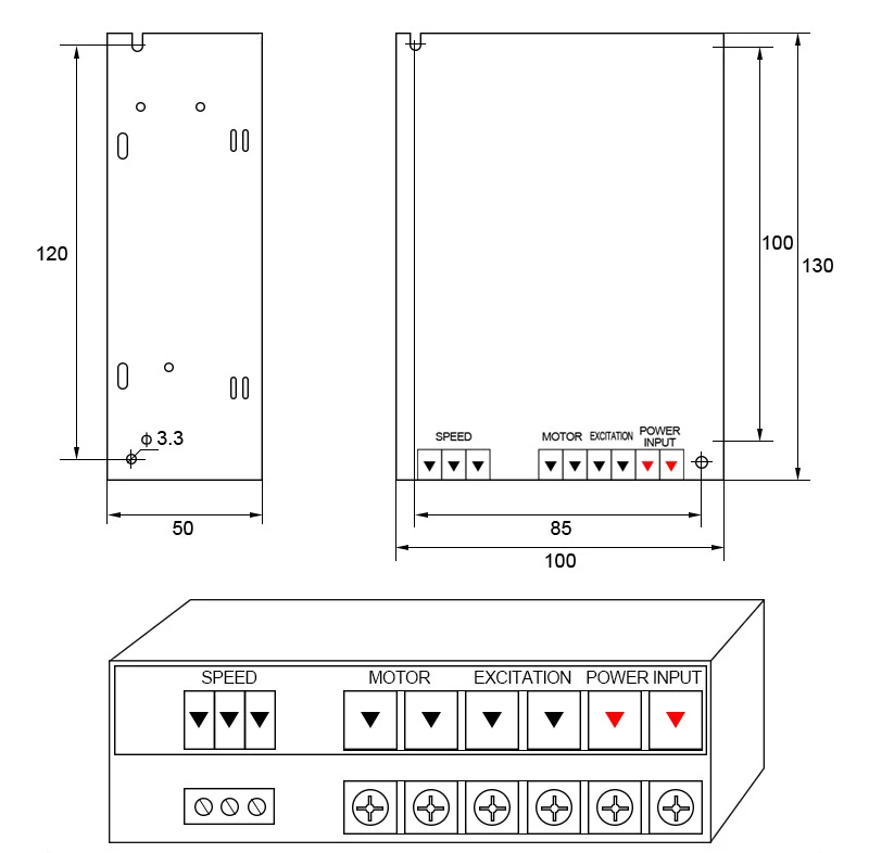 Corriente: 6A Excitación: 1A Potencia máxima: 600W