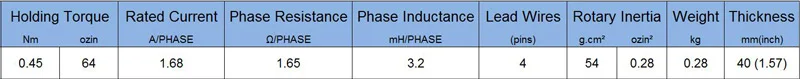 Comprar Motor paso a paso de alto par de 40mm 42 motor Nema17 motor paso a paso 1.7A 0.45N.M 2 fases para impresora 3D de máquina