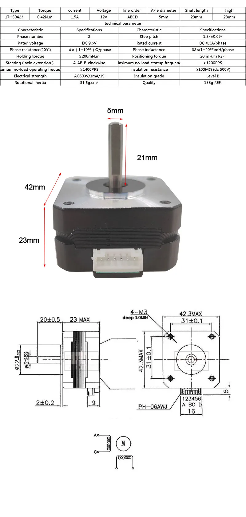 Comprar Motor paso a paso para impresión 3D, 42, 23mm, 0.42N.m, 1.5A, 17HS4023