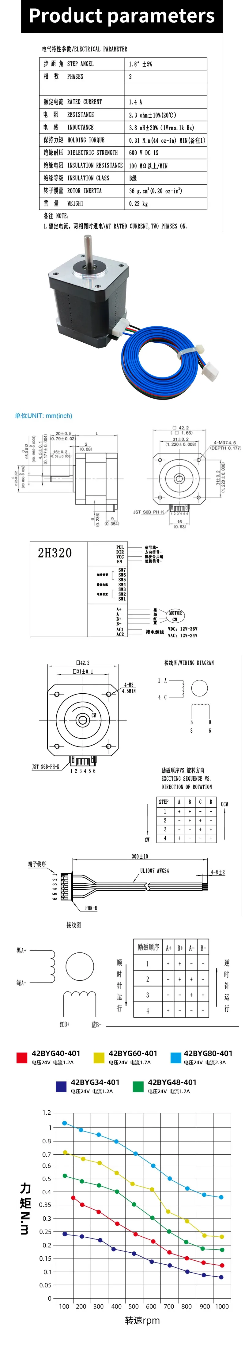 Comprar Motor paso a paso 42BYGH48 Nema17, 2 fases, 4 conductores, 48MM, alto par, bajo ruido, Motor de 42 pasos para impresora 3D