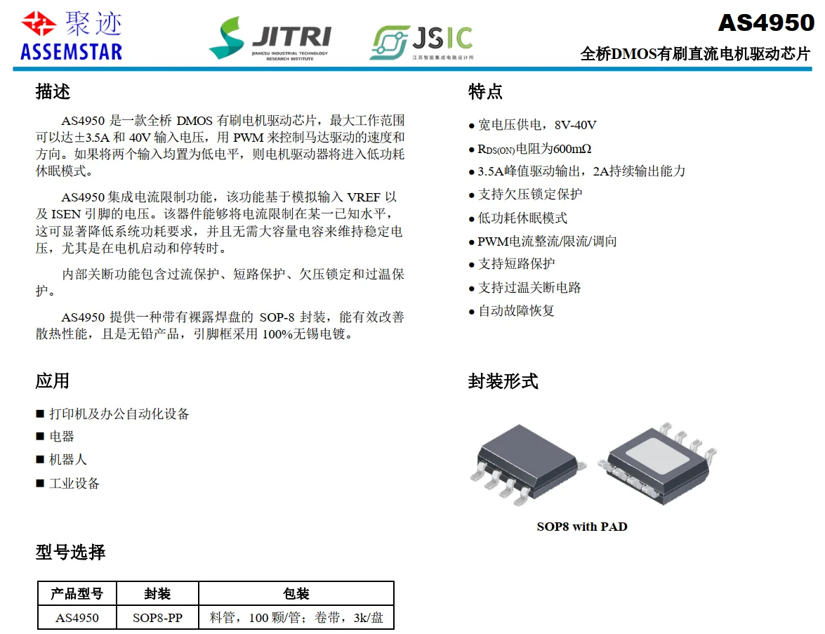 Comprar Motor sin escobillas AS4950 DC, accionamiento de puente completo, que reemplaza a A4950 y DRV8870