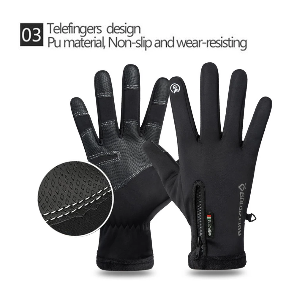 Motorcycle Gloves Winter Thermal Fleece Lined Winter Water Resistant Skin-friendly Touch Screen Outdoor Moto Riding Ski GlovesDescription: