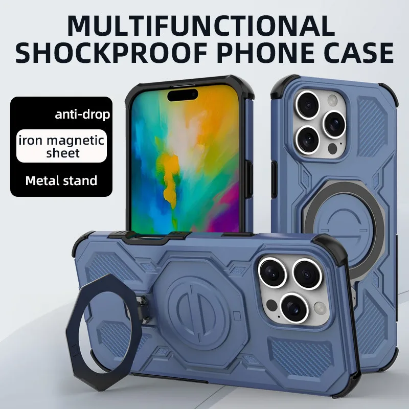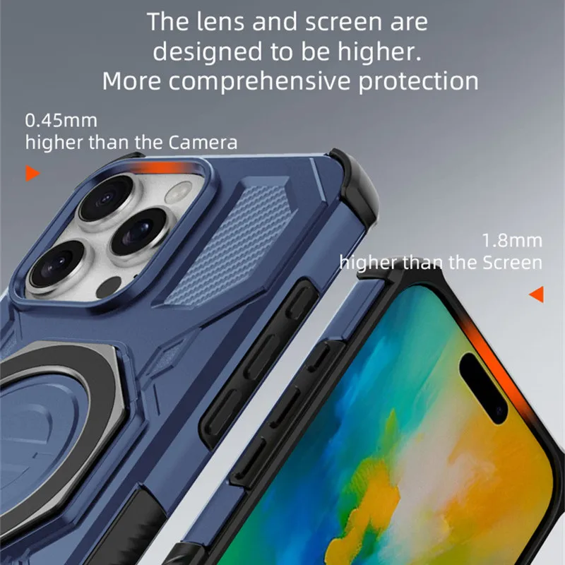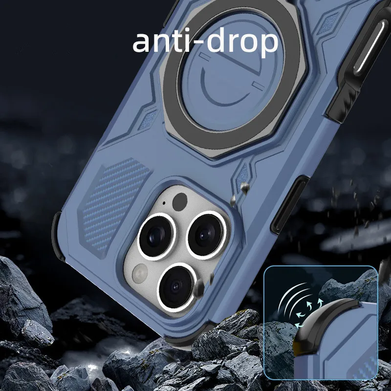 Armadura de doble capa +360° Soporte metálico +Carga inalámbrica magnéticaCubierta