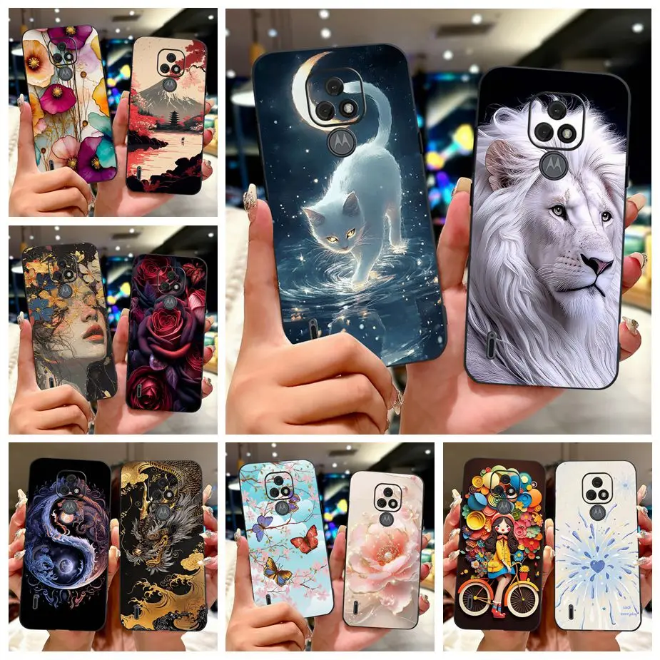 Para Motorola Moto E7 Plus funda XT2081-1 XT2081-2 lindo gato León cubierta pintada funda de silicona suave para Motorola E7 MotoE7 Plus bolsas
