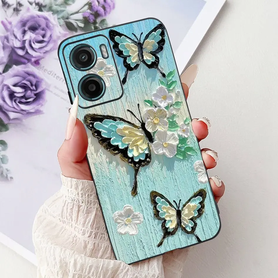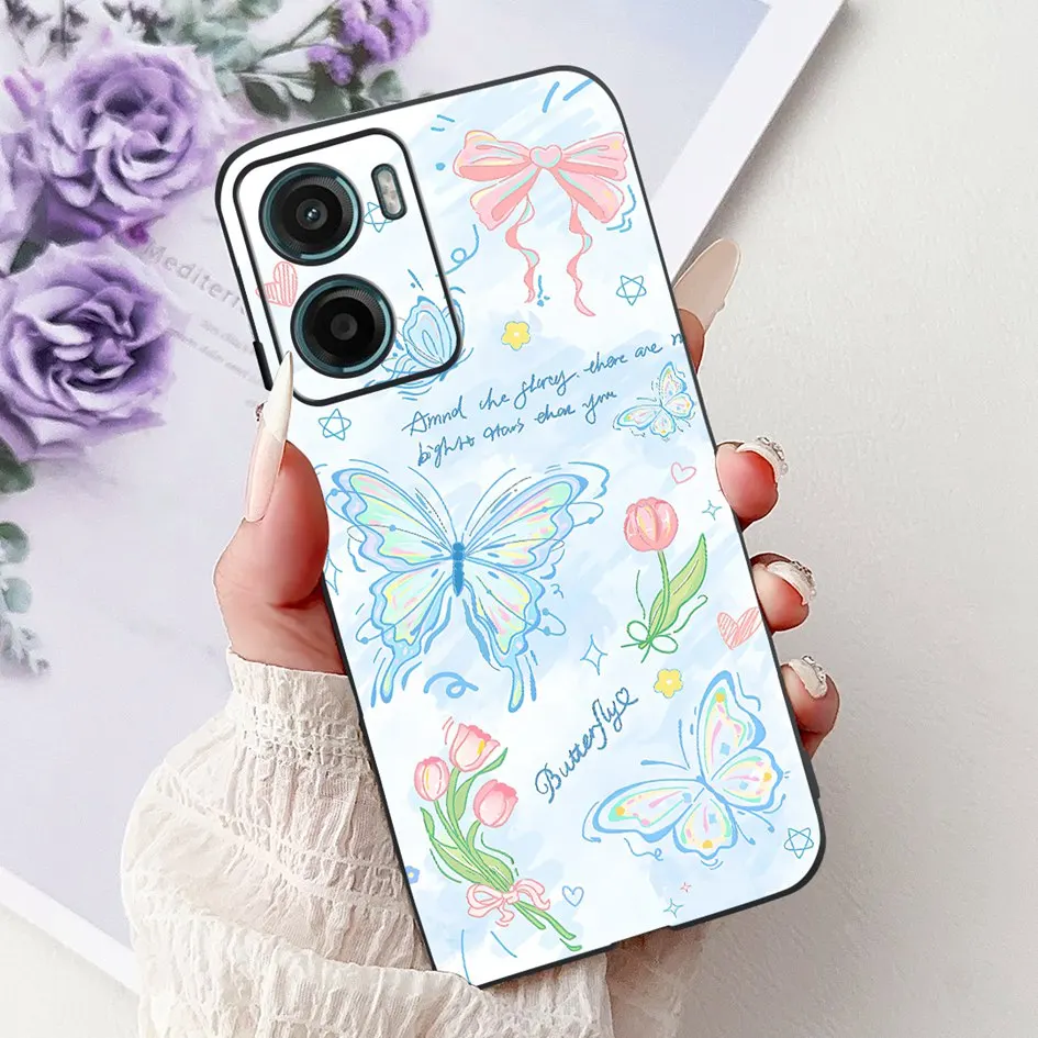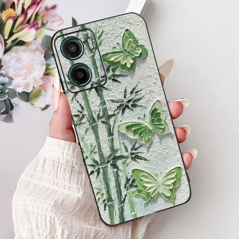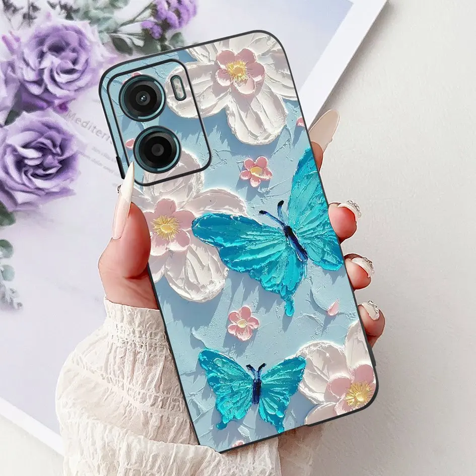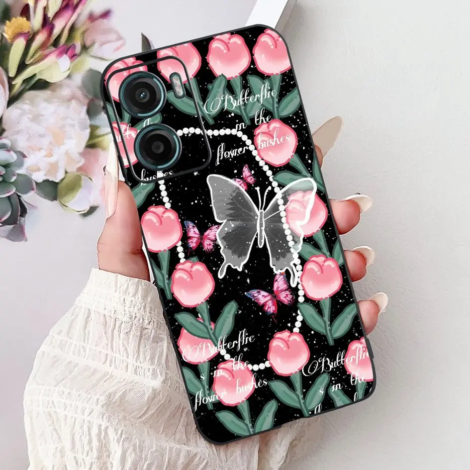 Para Motorola Moto G05 E15 funda 2024 nueva moda mariposa flor silicona suave capa negra funda de teléfono para MotoG05 MotoE15 Fundas