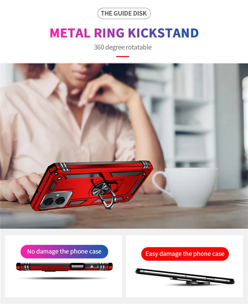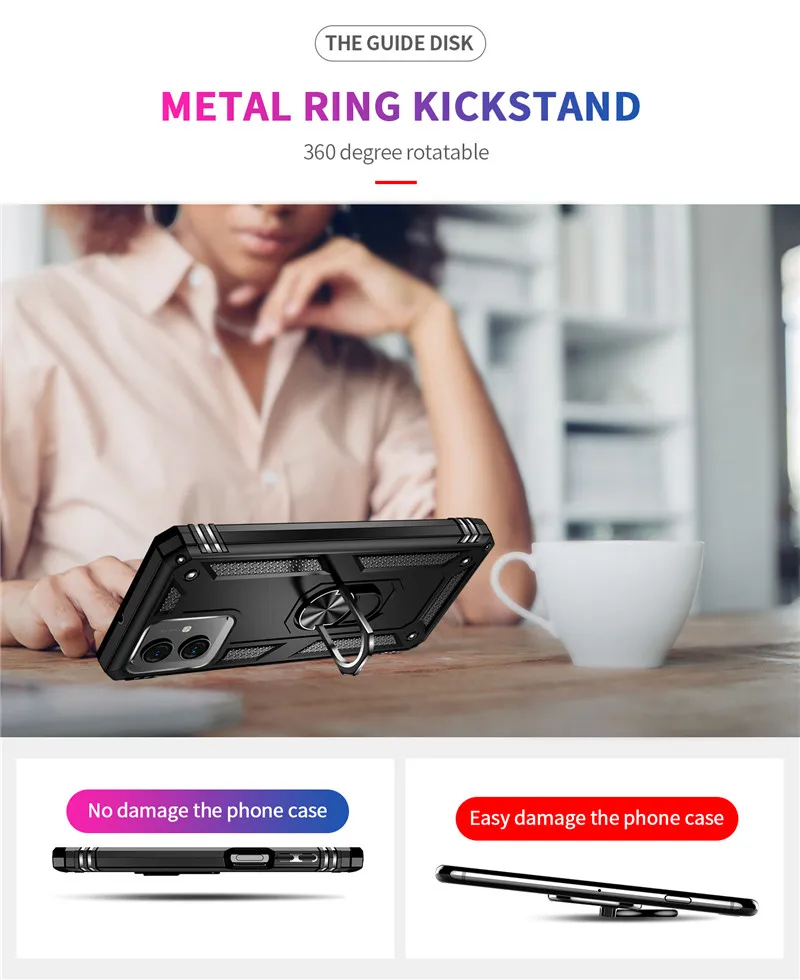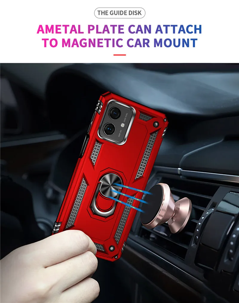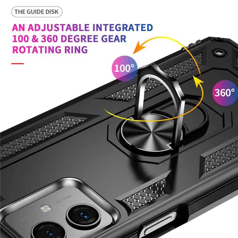 Comprar Para Motorola Moto G54 funda de lujo armadura a prueba de golpes funda de teléfono para Moto G54 G 54 MotoG54 soporte de anillo magnético para coche contraportada