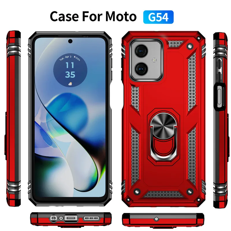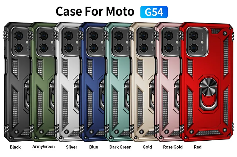 Para Motorola Moto G54 funda de lujo armadura a prueba de golpes funda de teléfono para Moto G54 G 54 MotoG54 soporte de anillo magnético para coche contraportada