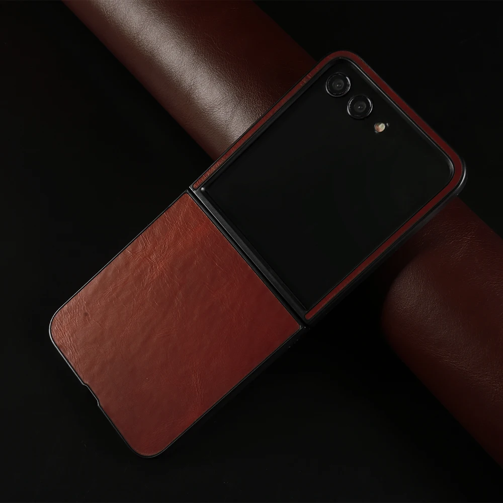 Para Samsung Galaxy Z Flip 6 funda Premium fundas de cuero genuino Z FLip6 Vintag patrón de cera de aceite carcasa de teléfono protección Coque