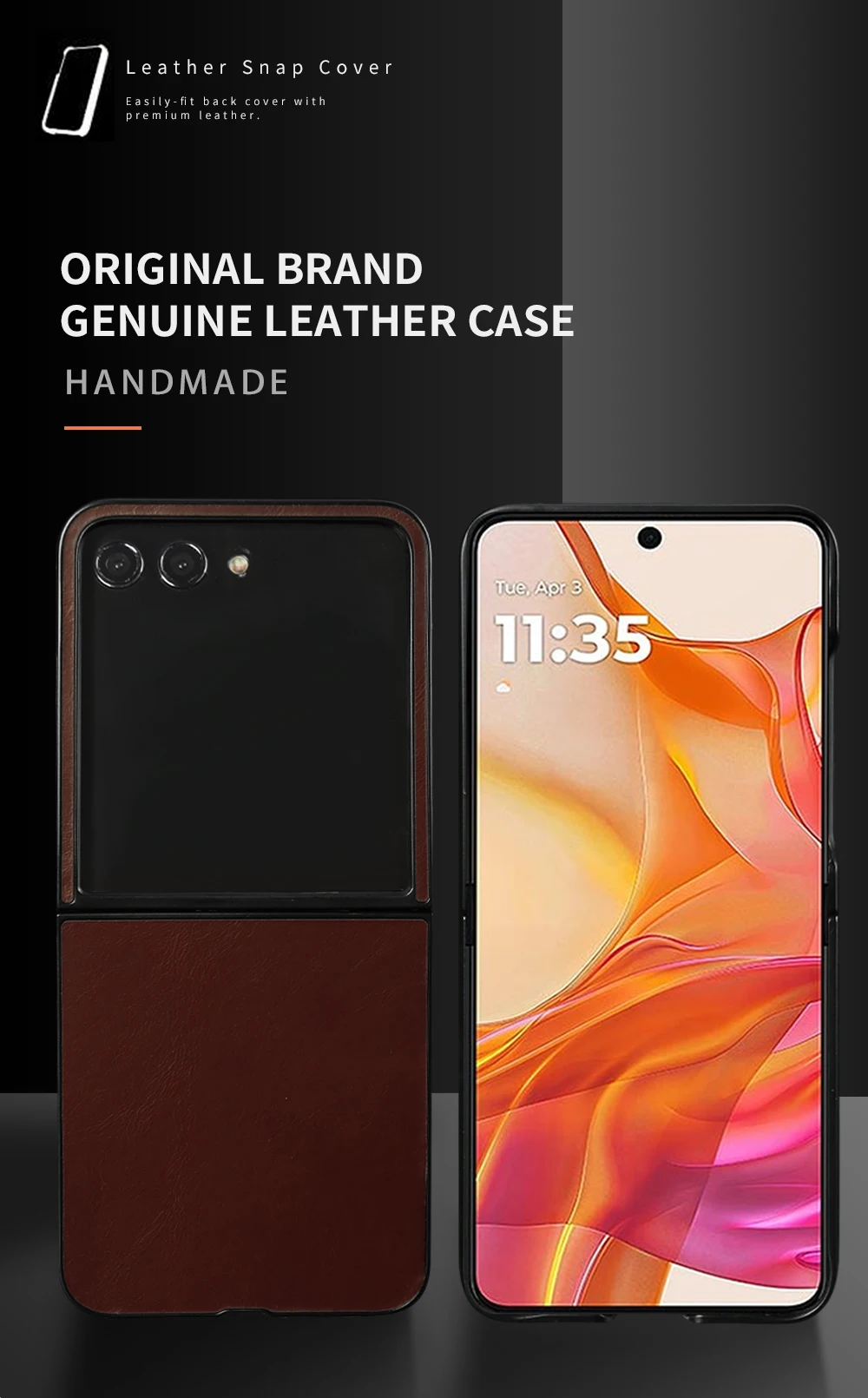 Funda de cuero genuino se adapta perfectamente a la funda Motorola Razr 50 Ultra/funda Motorola Razr 50 Ultra de cuero/funda de cuero Motorola Razr 50 Ultra/motorola Razr 50 funda de cuero/funda trasera de cuero Motorola Razr 50