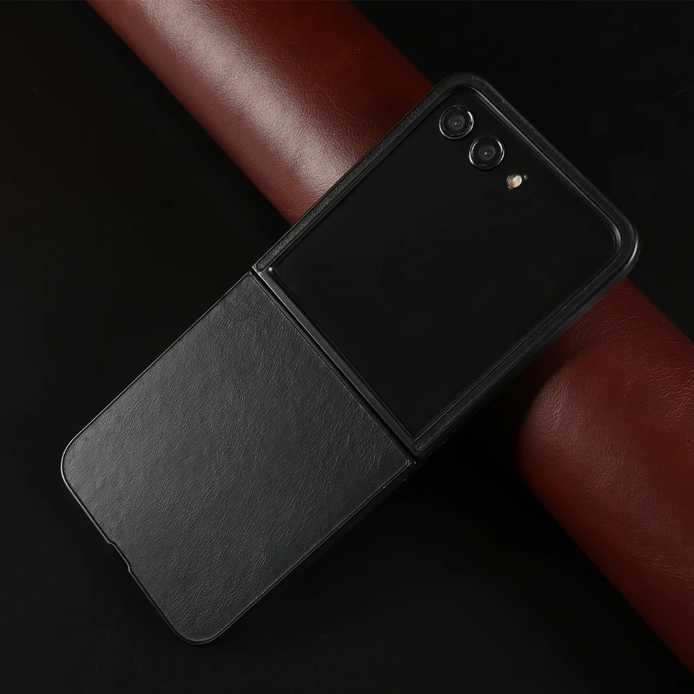 Funda de cuero genuino Premium para Samsung Galaxy Z Flip5 funda Z FLip4 flip3 Vintag patrón de cera de aceite fundas protectoras de carcasa de teléfono