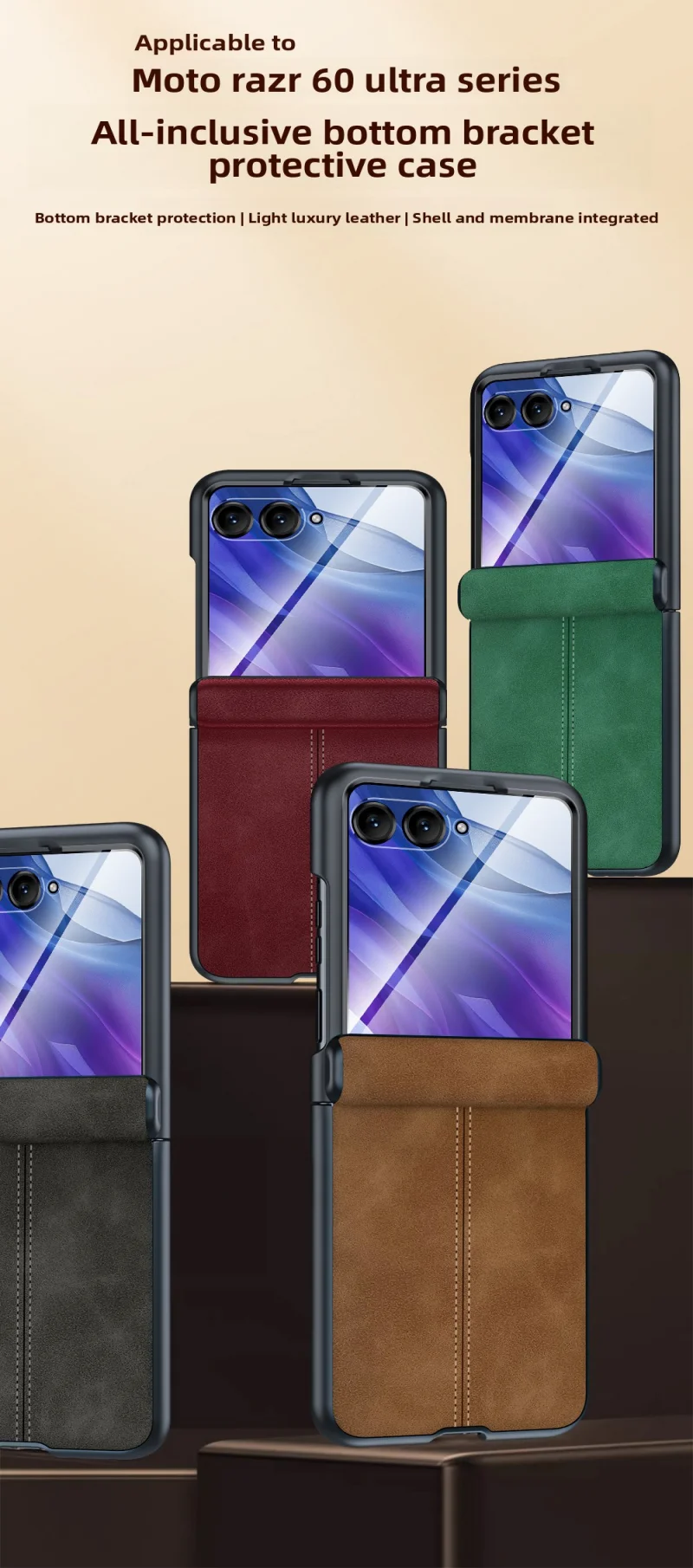 Para Motorola Razr 60 Ultra funda de lujo de cuero PU película protectora trasera funda protectora para Moto Razr 60 50 Ultra carcasa de teléfono