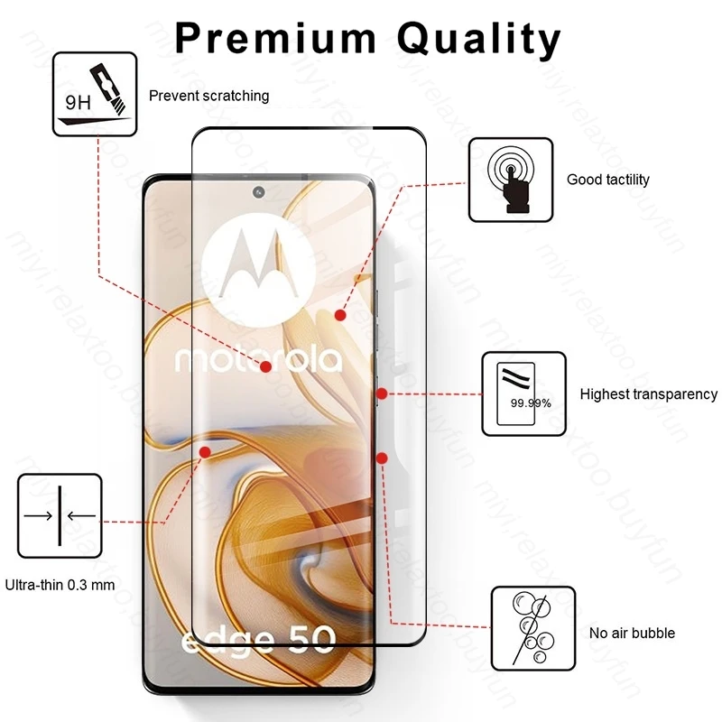 Motorolaedge50 Glass 3 uds Protector de pantalla curvo de vidrio templado para Motorola Edge 50 5G vidrio protector Moto Rola Edge50 2024